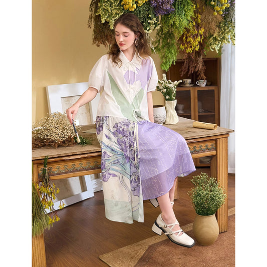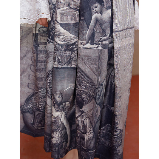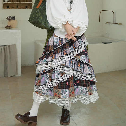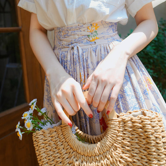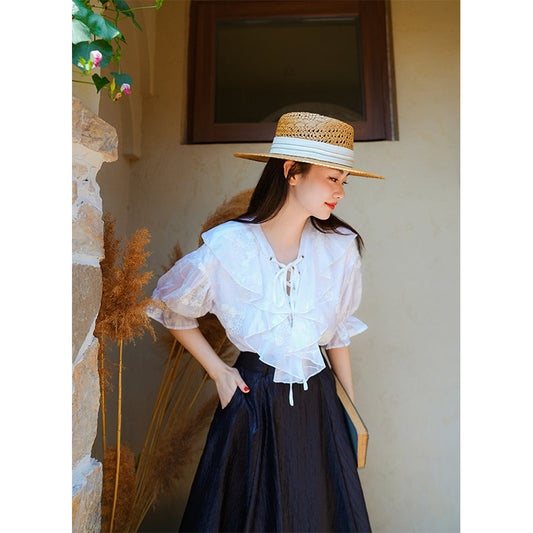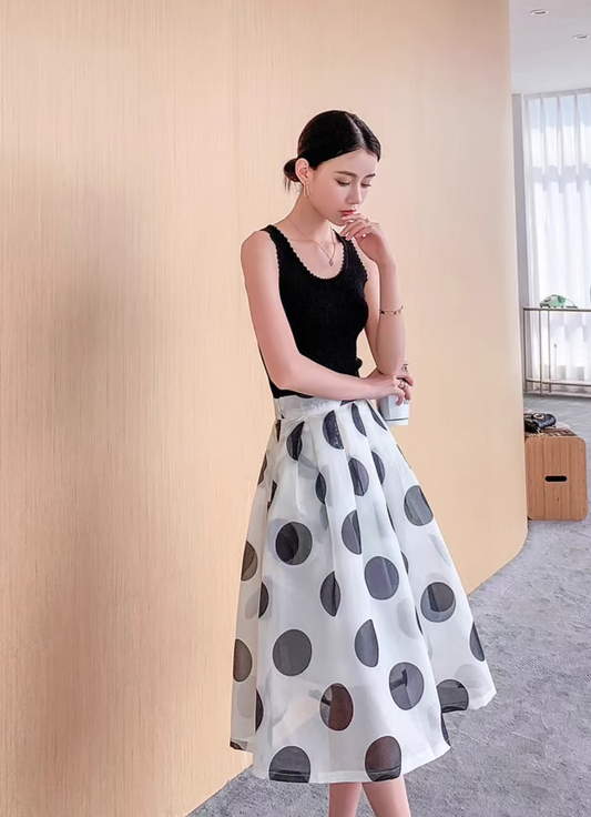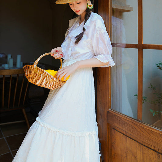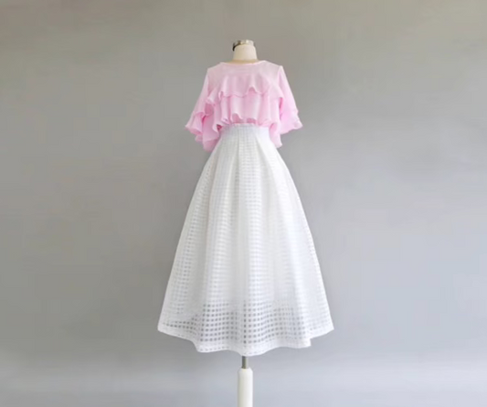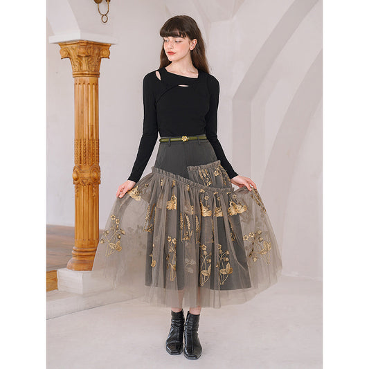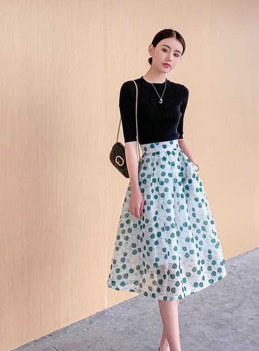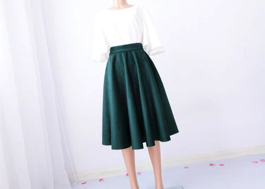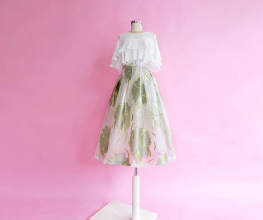 Elegant Bean Green Organza Embroidered Puff Skirt