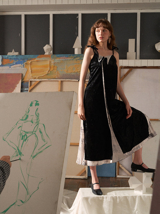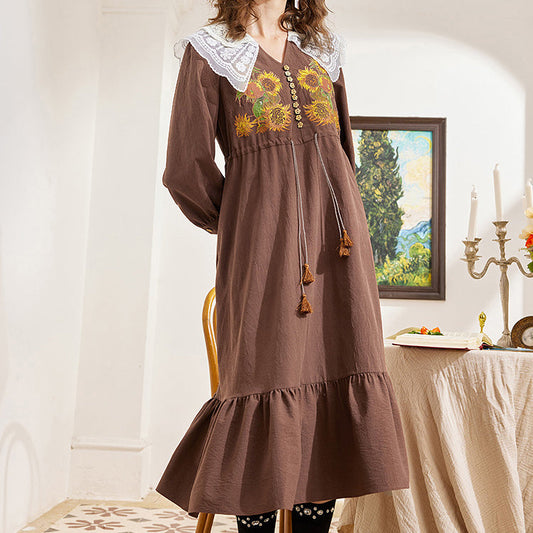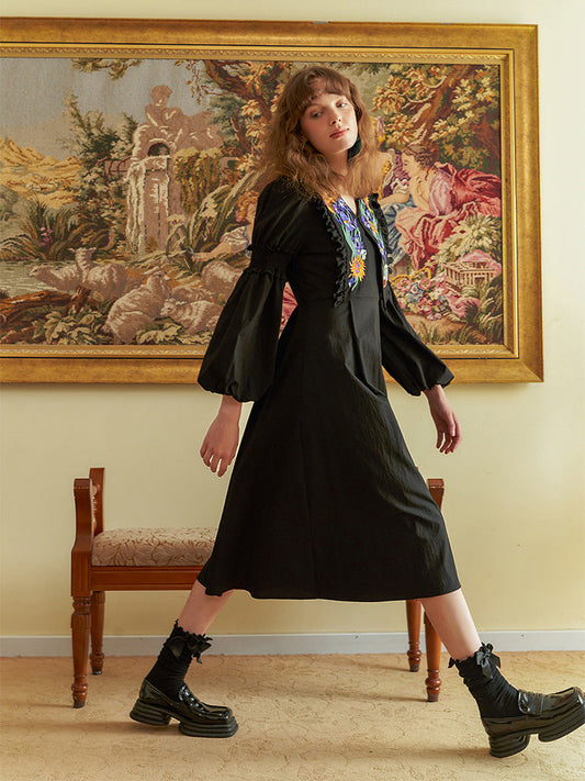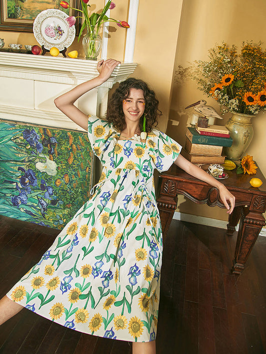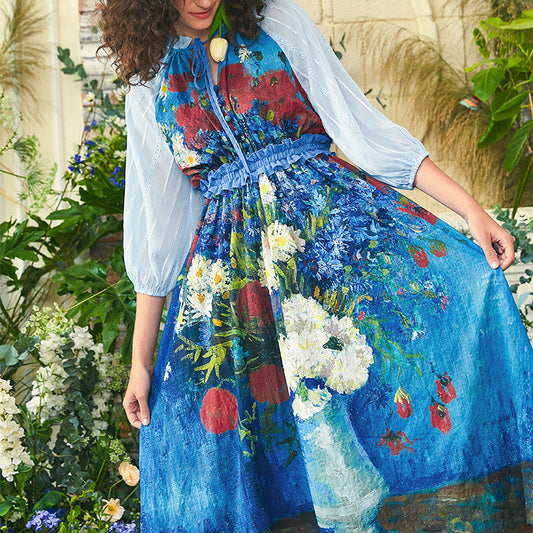 花瓶のデイジーとポピーと花瓶のヤグルマギクとケシのロングワンピース