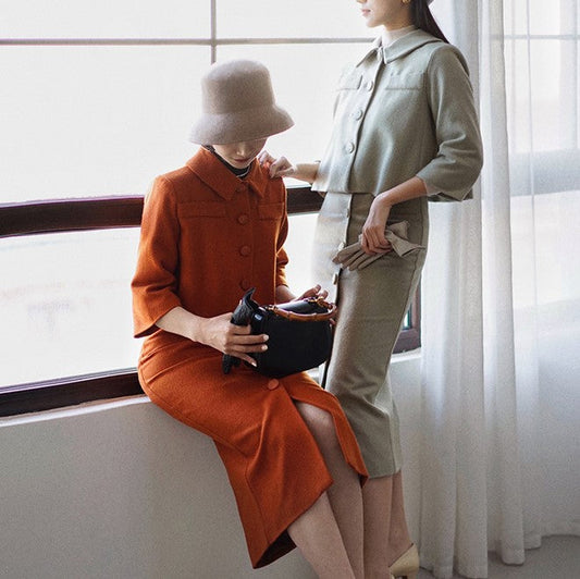 Red Lady Slim Knit Cardigan and Slim Knit Skirt
