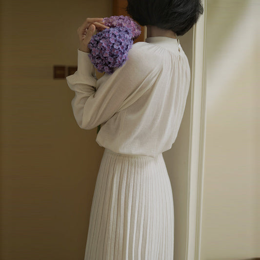 British Lady High Waist Skirt / Vest / High Neck Ribbon Blouse