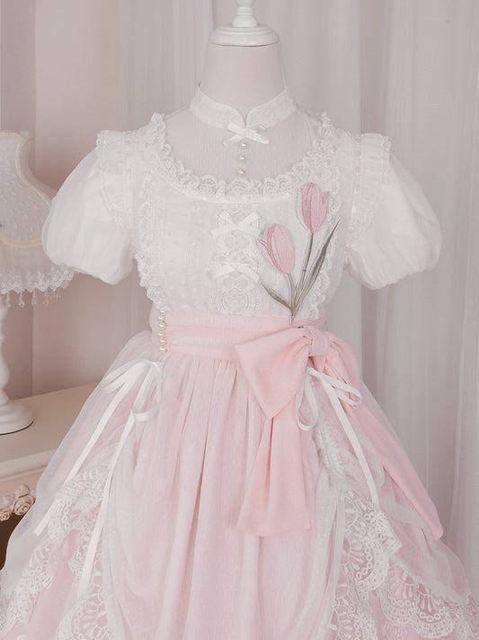 Garden sunflower jumper skirt & polka dot ruffle veil