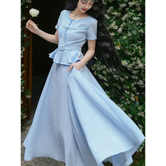 Two-piece Set Cat French Feather Decorated Hip Skirt