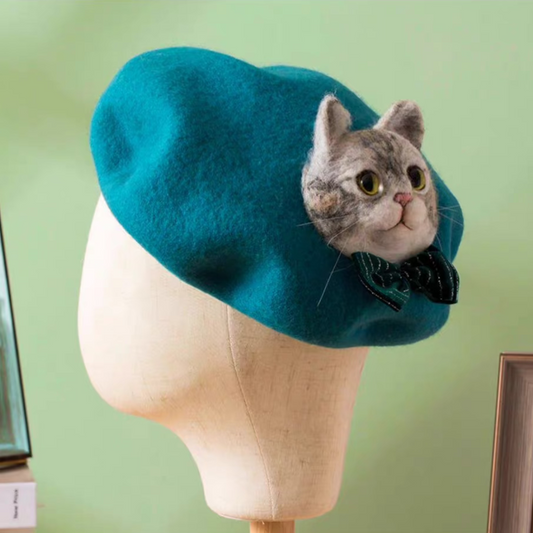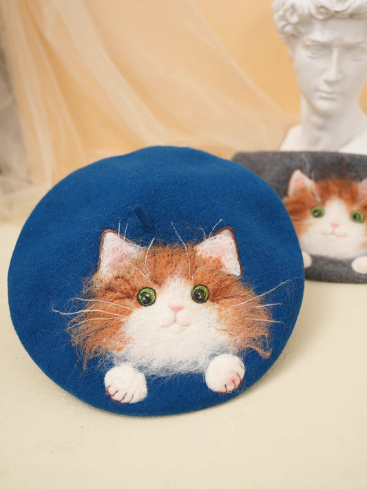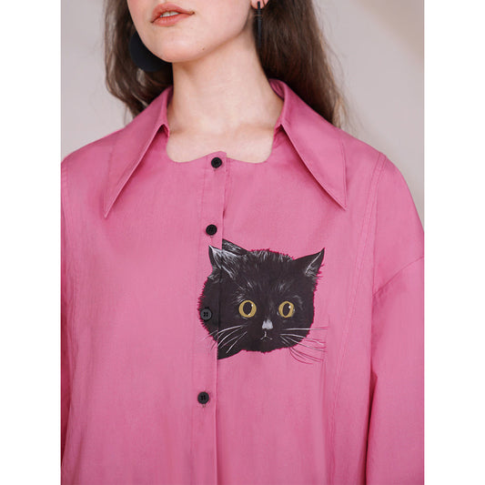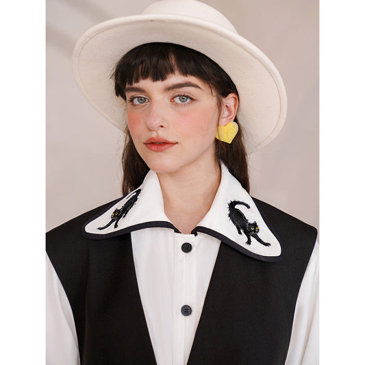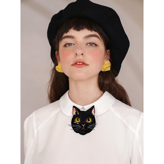Napping black cat embroidery two-tone blouse