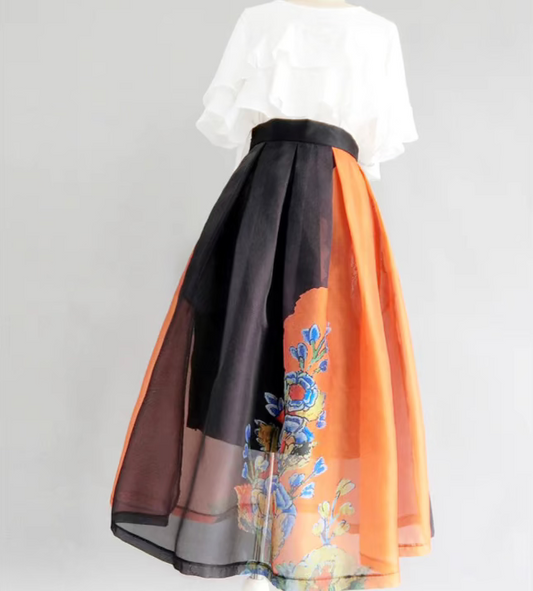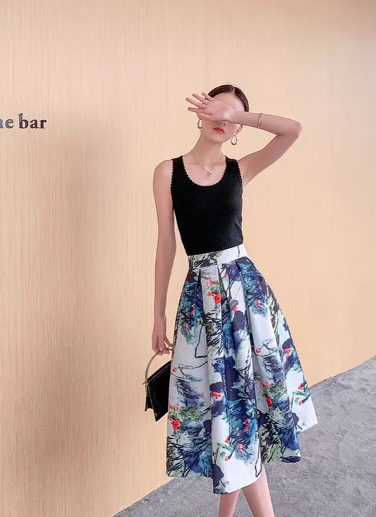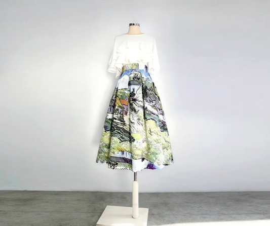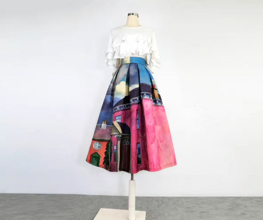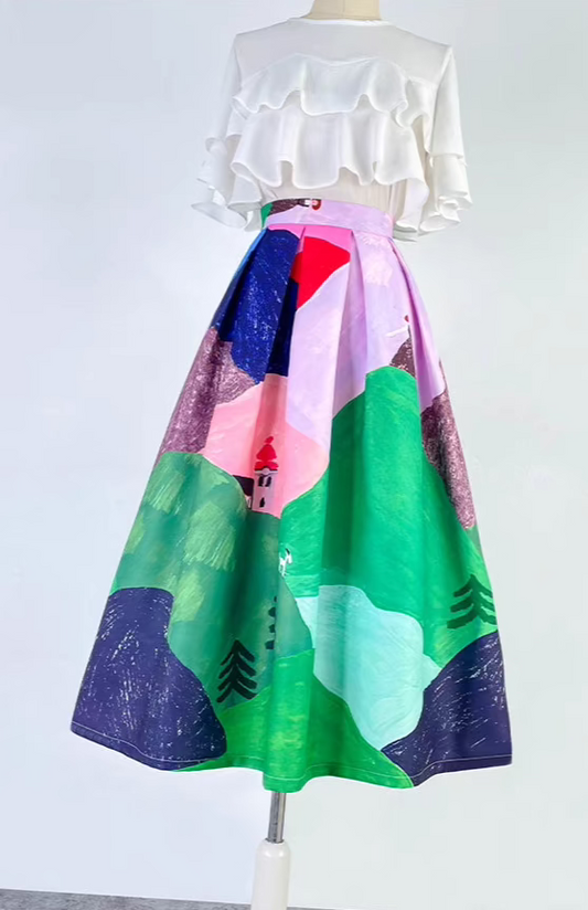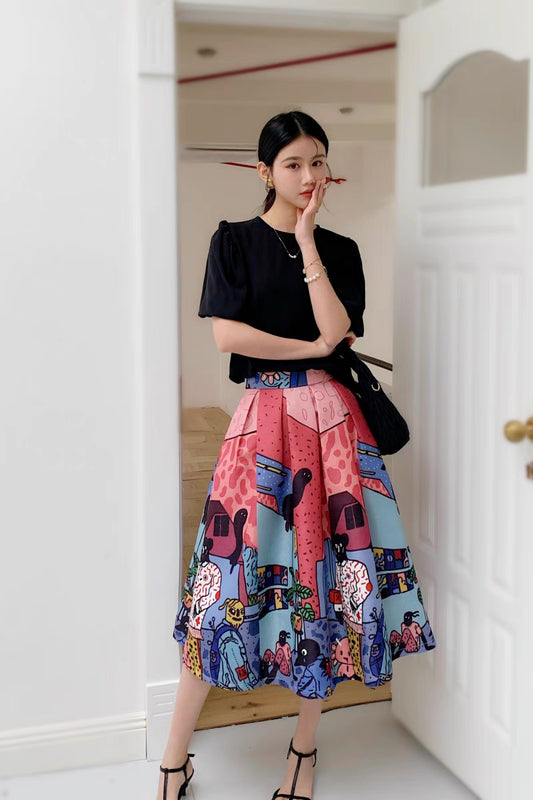 hand-painted animal city high-waisted early spring skirt