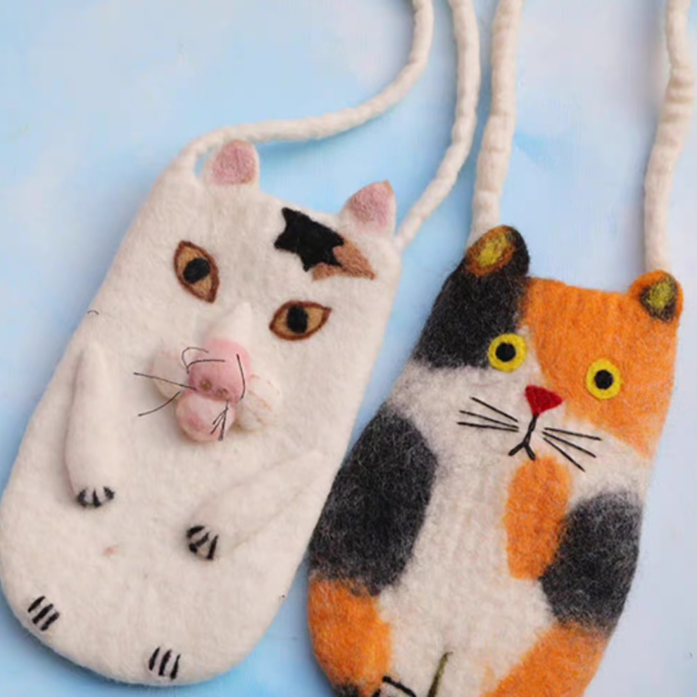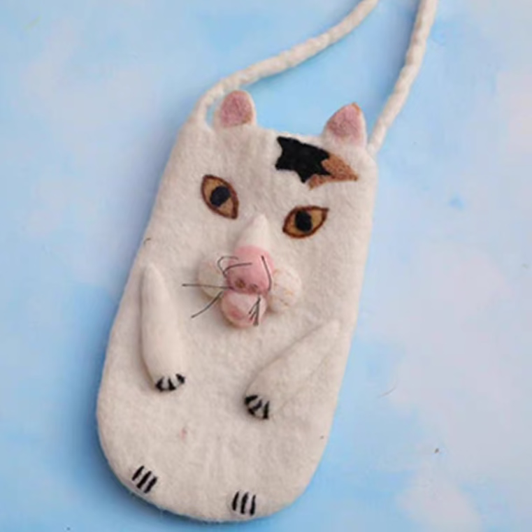 Wool Felt Cute Cat Crossbody Mobile Phone Bag