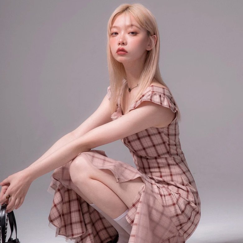 Sweet strawberry plaid summer sleeveless dress