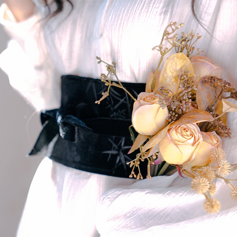 Colorful floral velvet bustier and corset