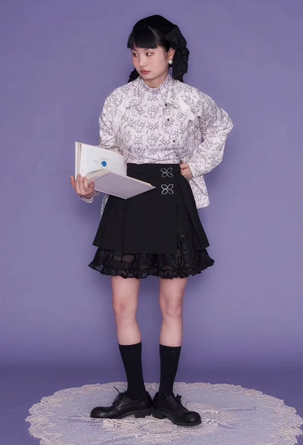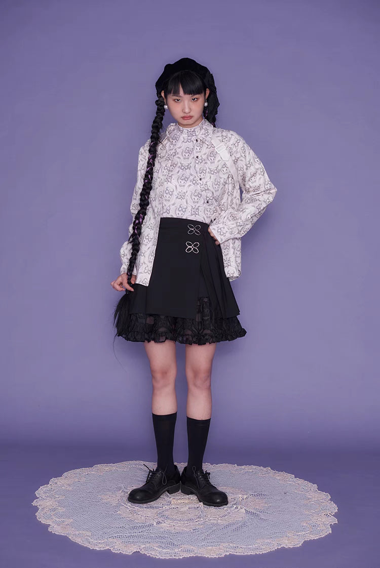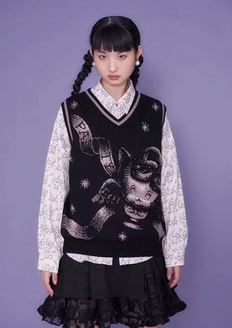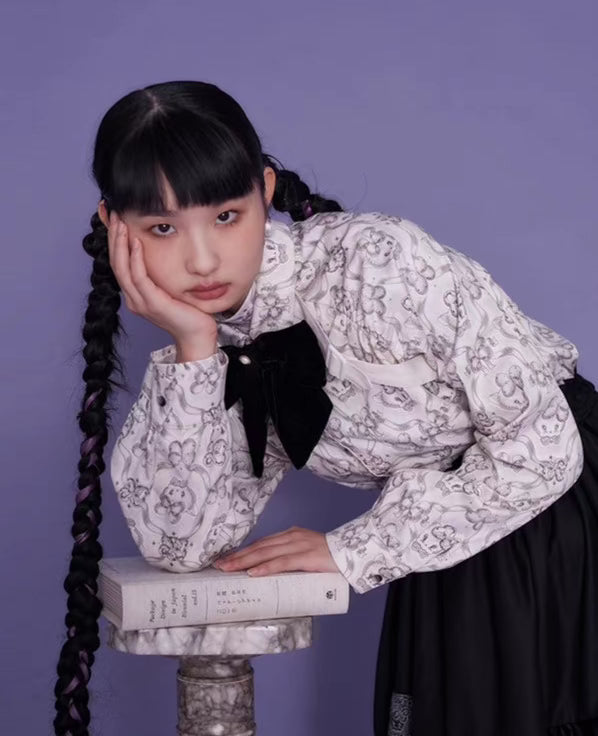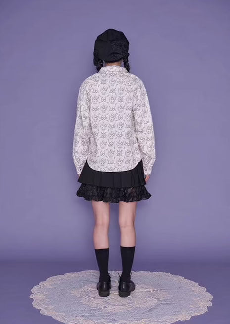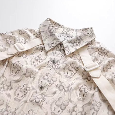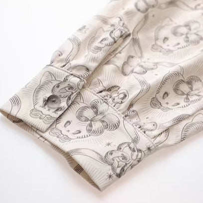 Wallpaper Printed Long Sleeve Retro Cat Shirt