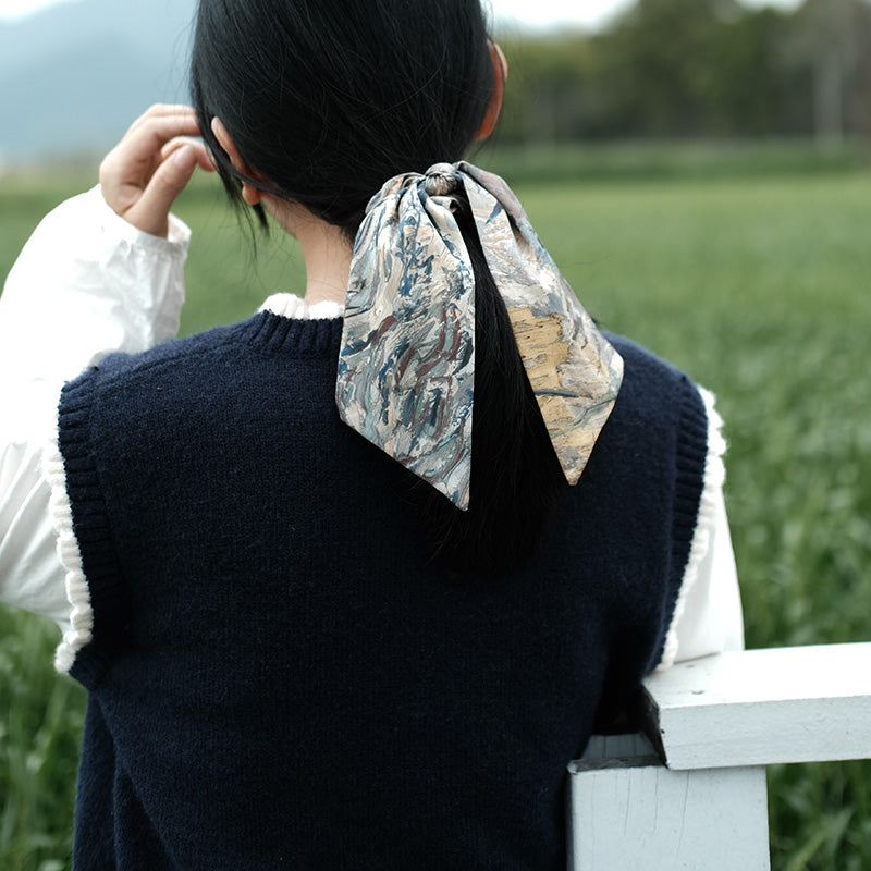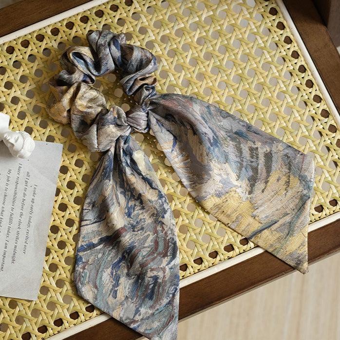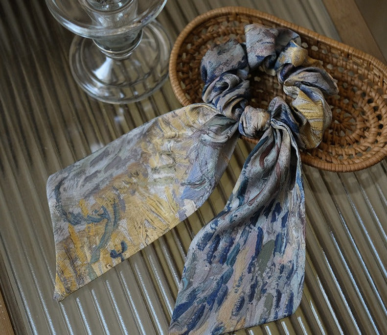 ゴッホの『麦畑』が描かれたリボンシュシュ。