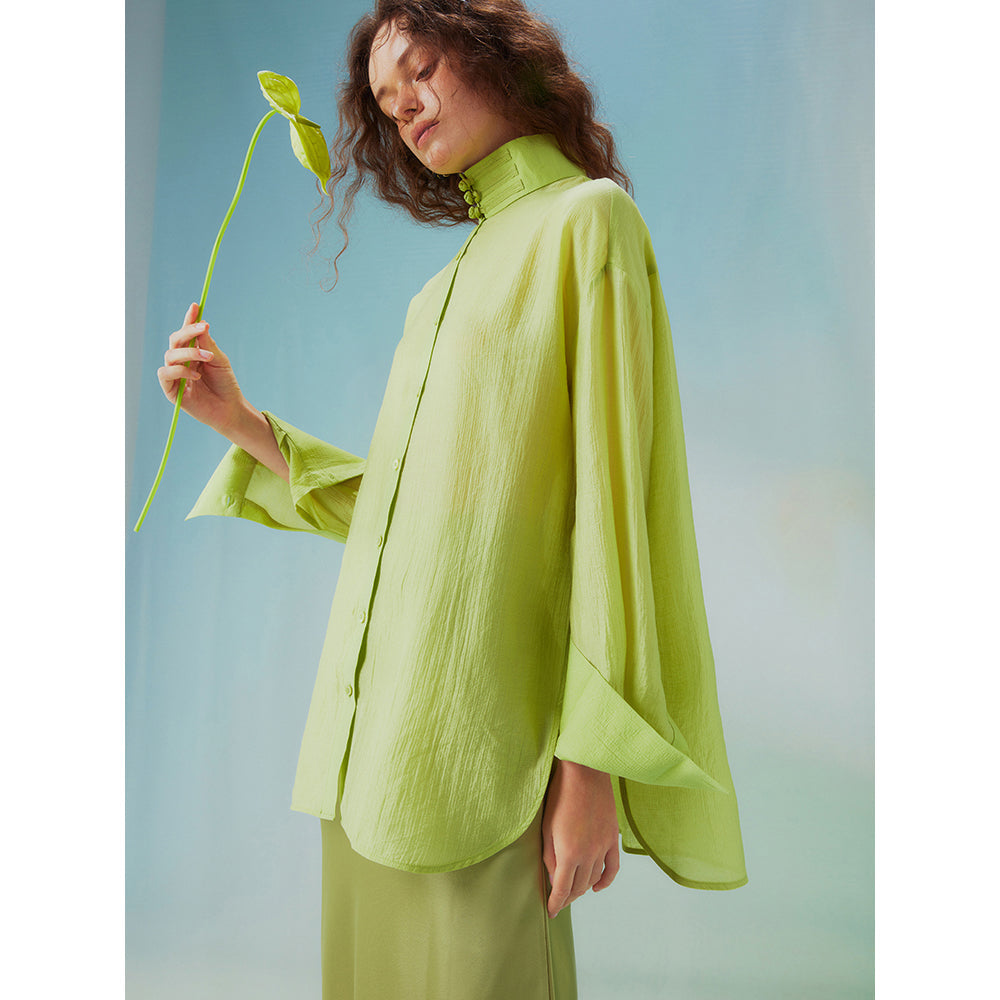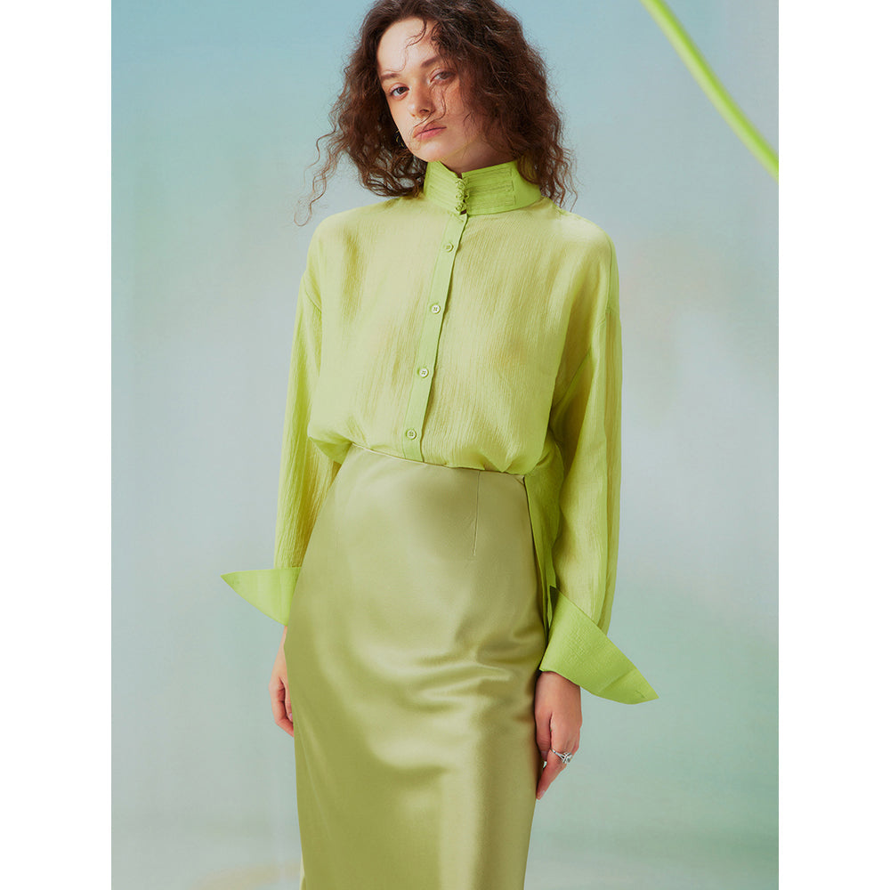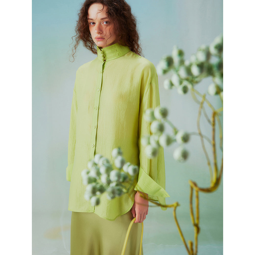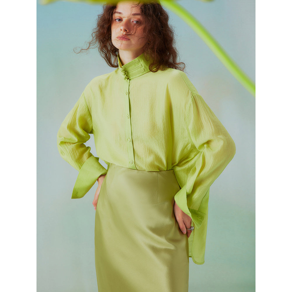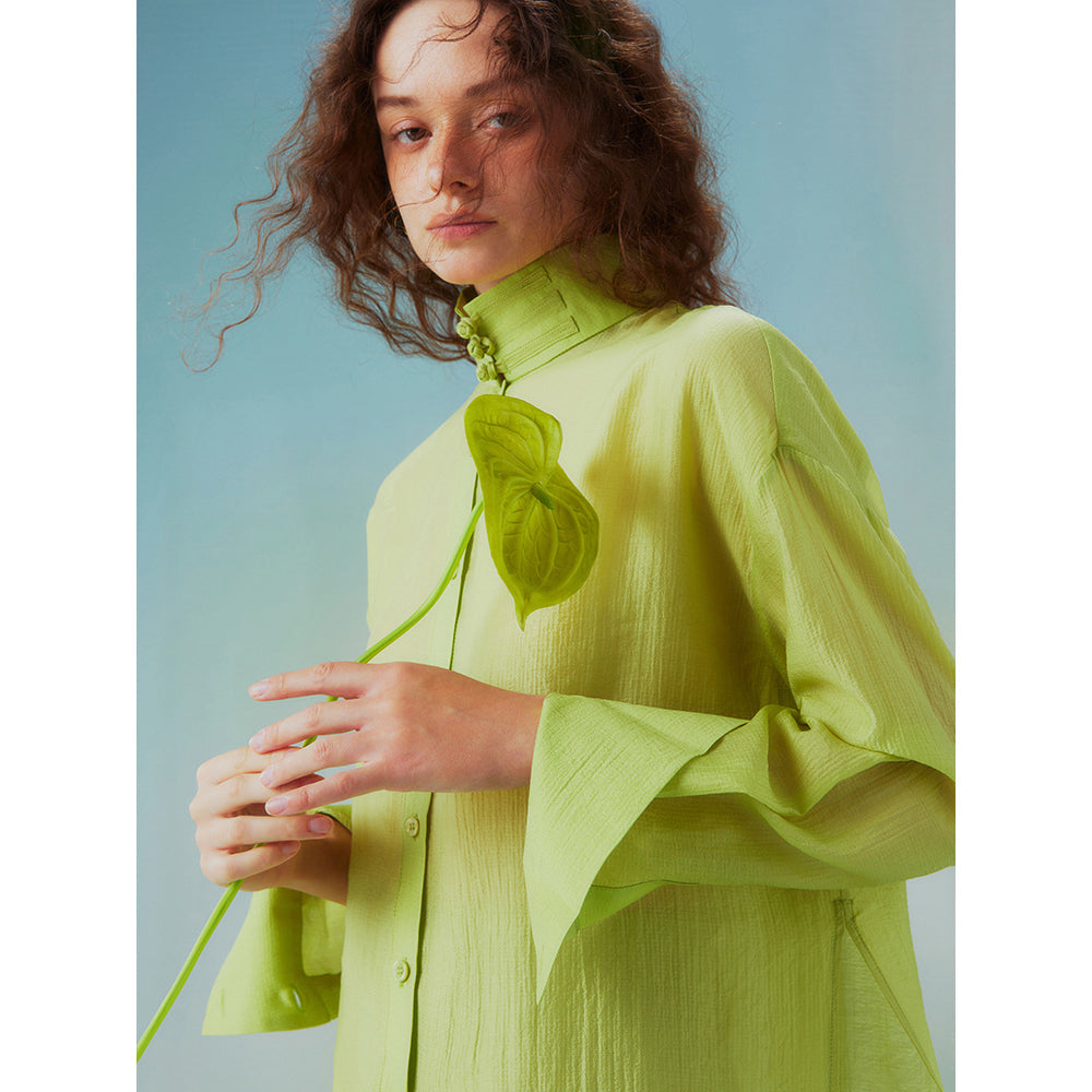 Fresh green stand collar blouse