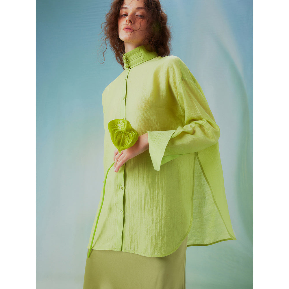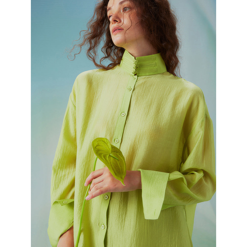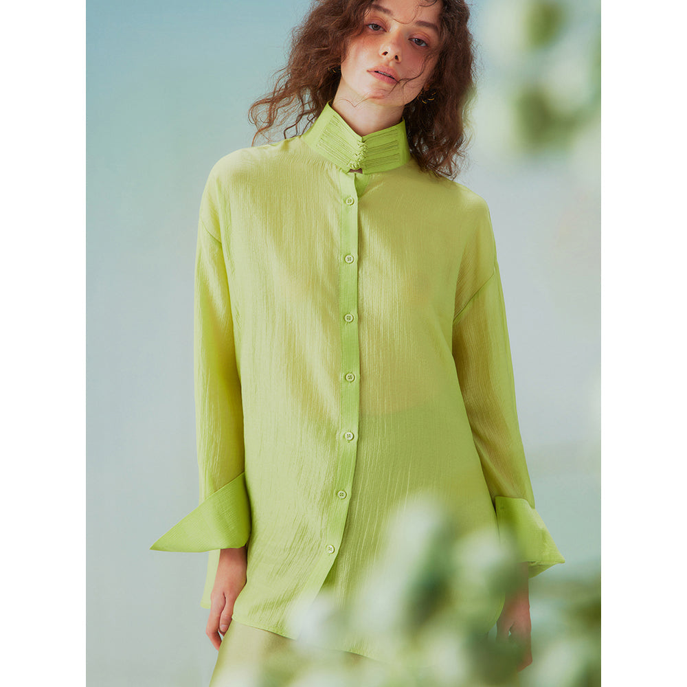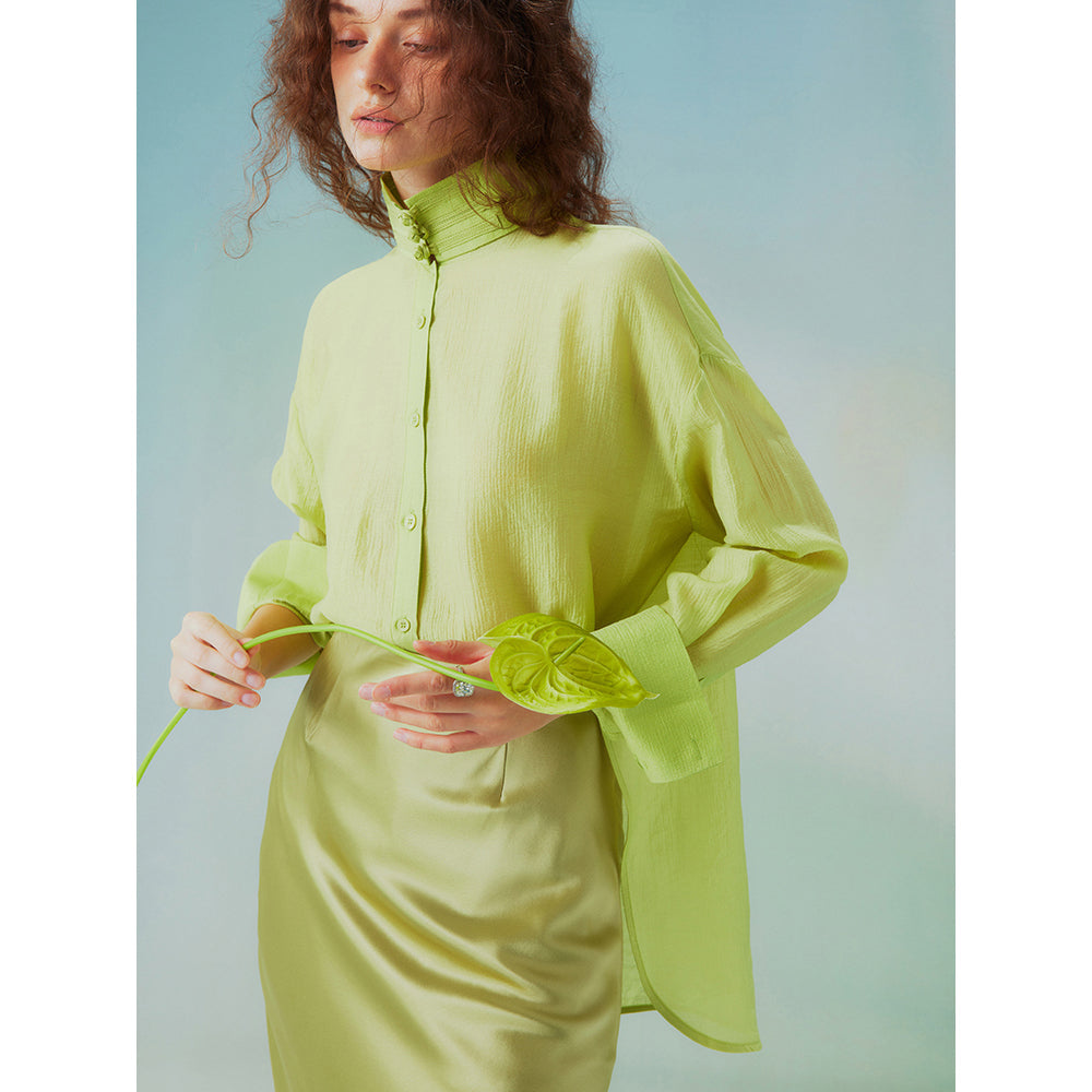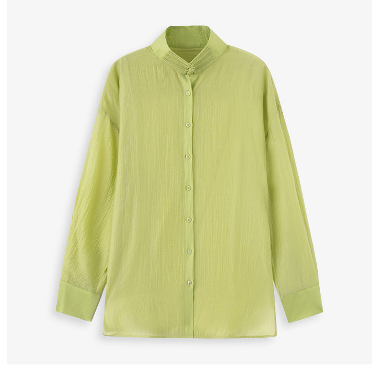 Fresh green stand collar blouse