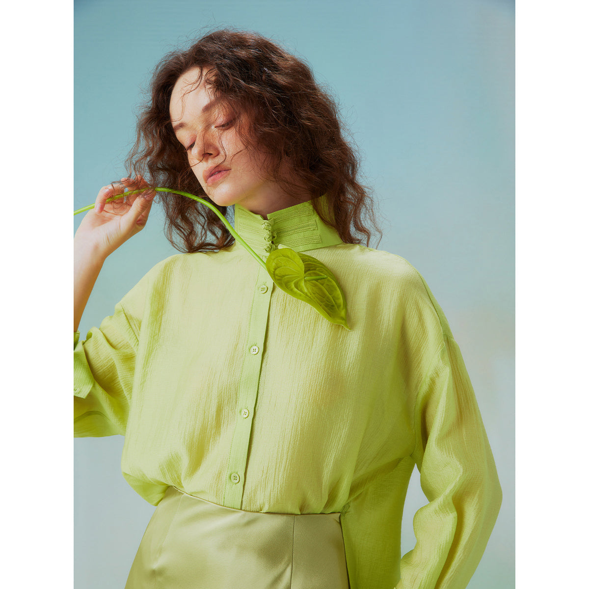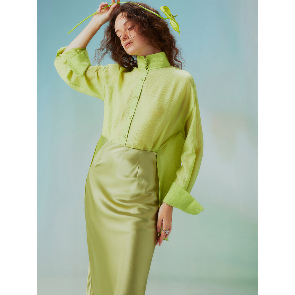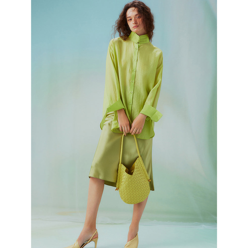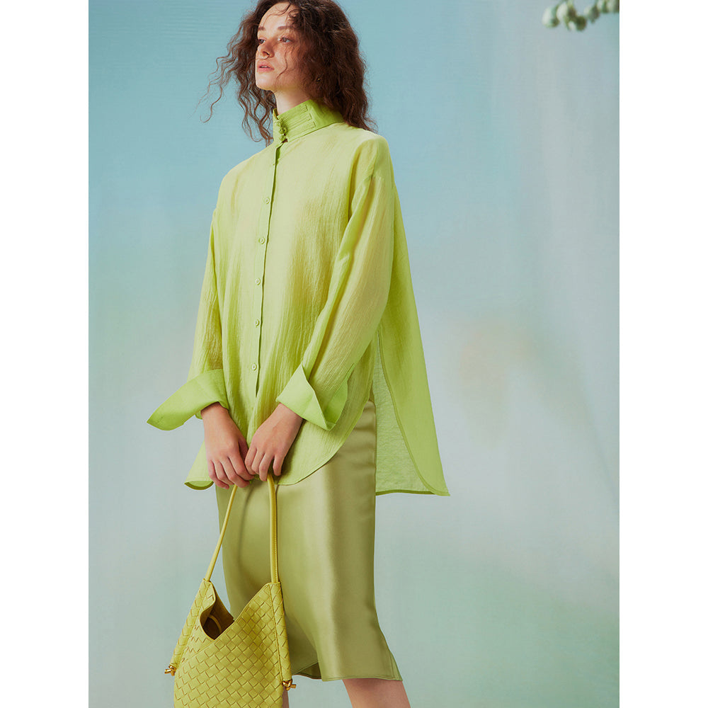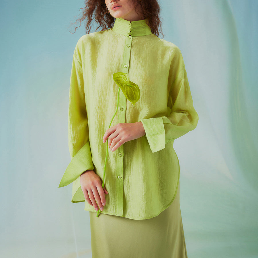 Fresh green stand collar blouse