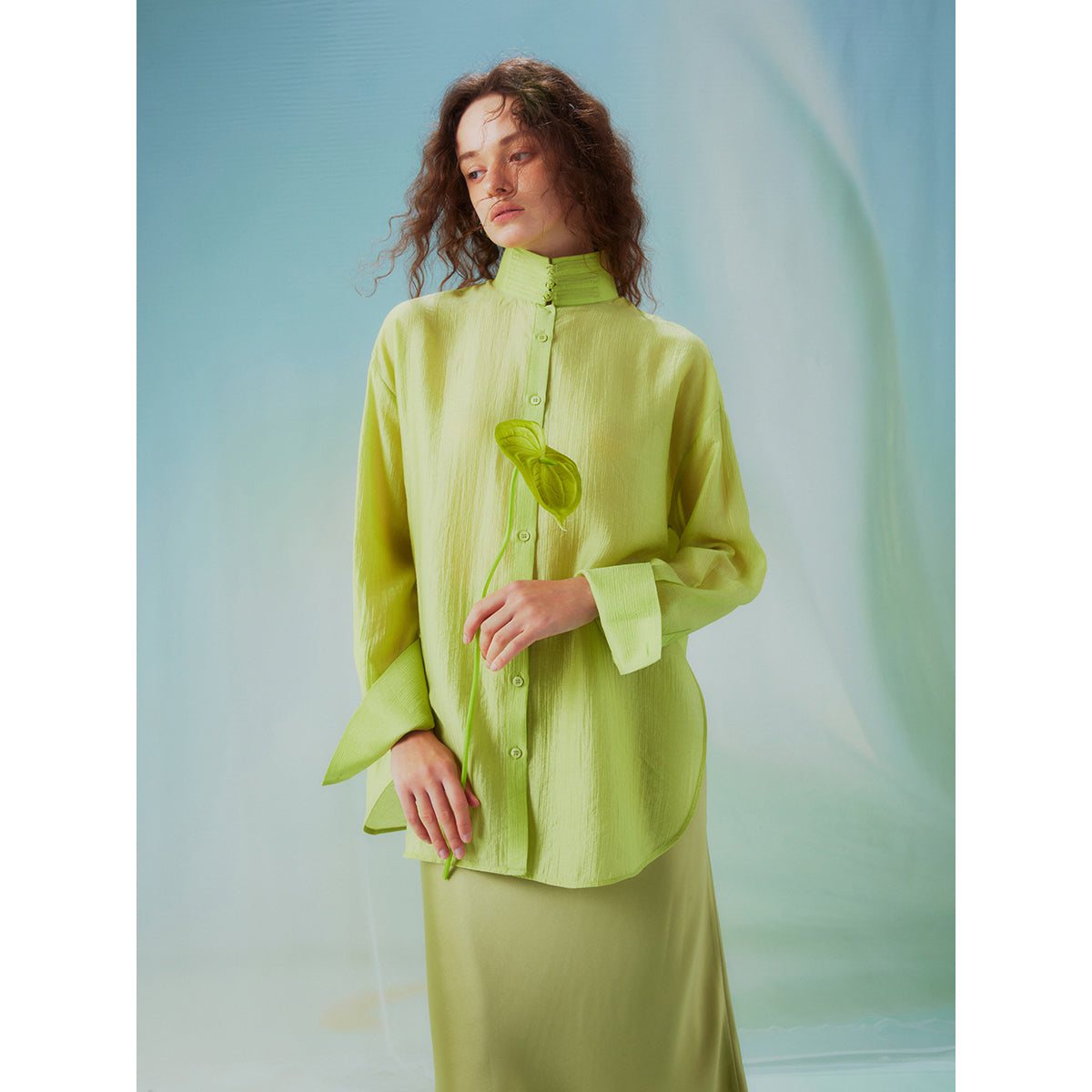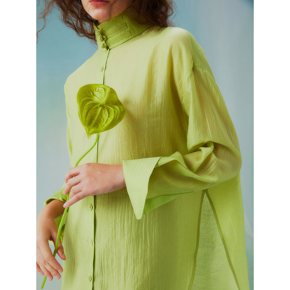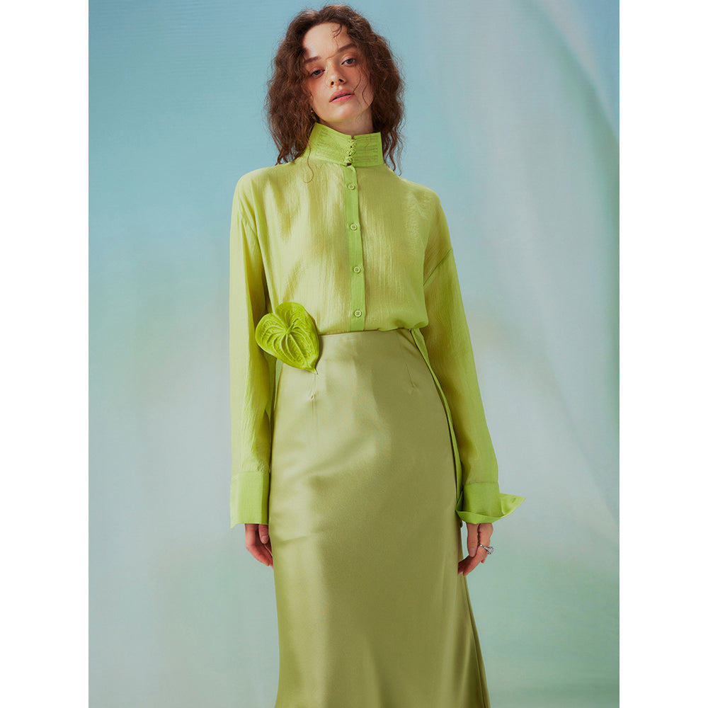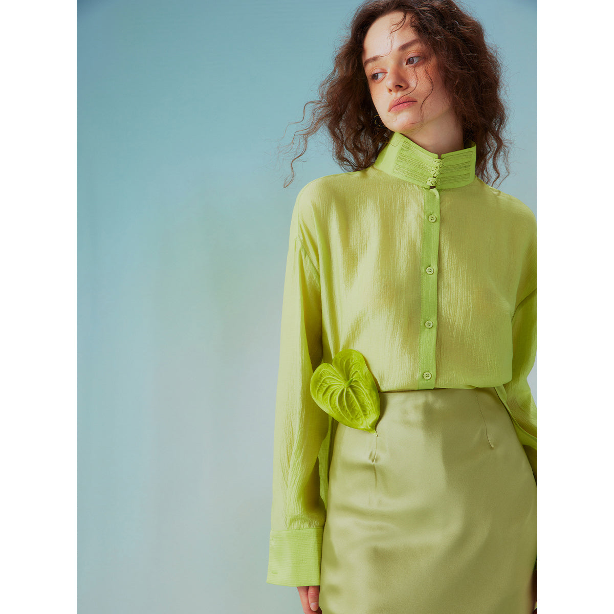Fresh green stand collar blouse