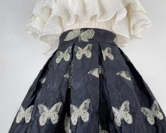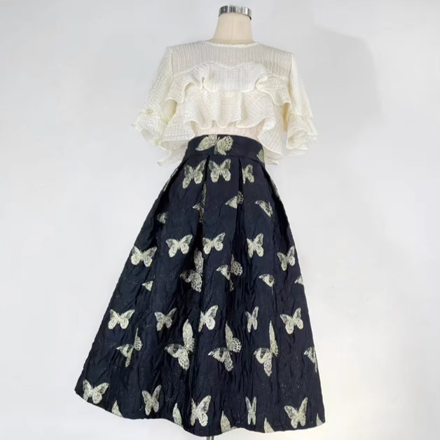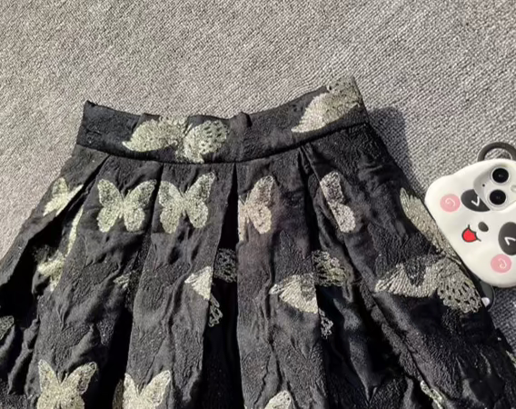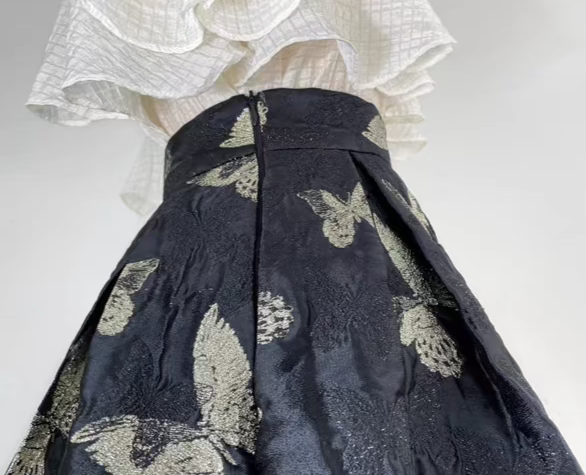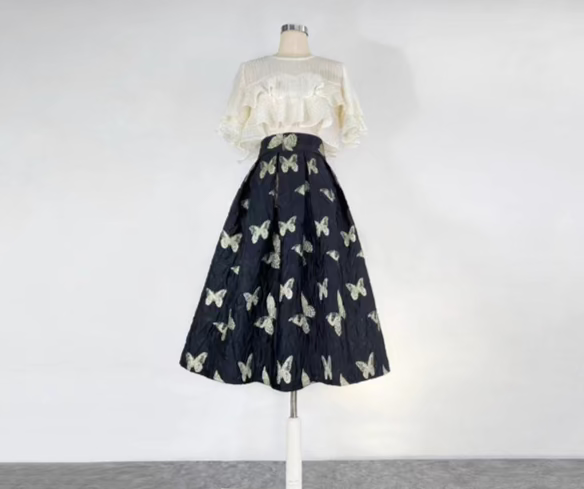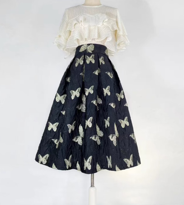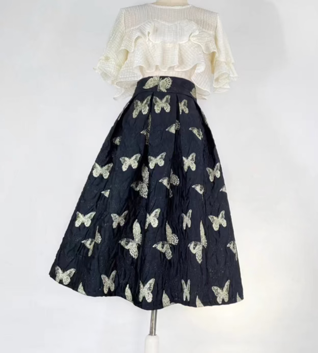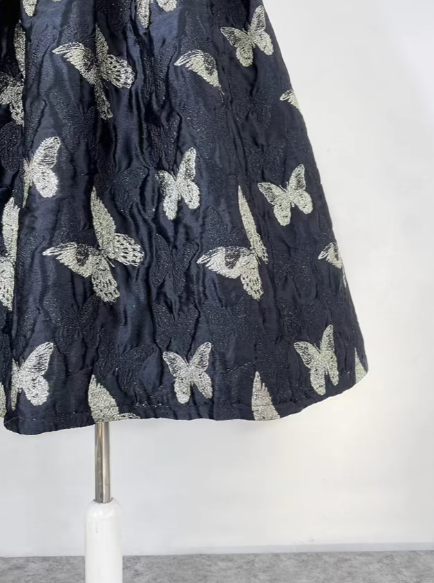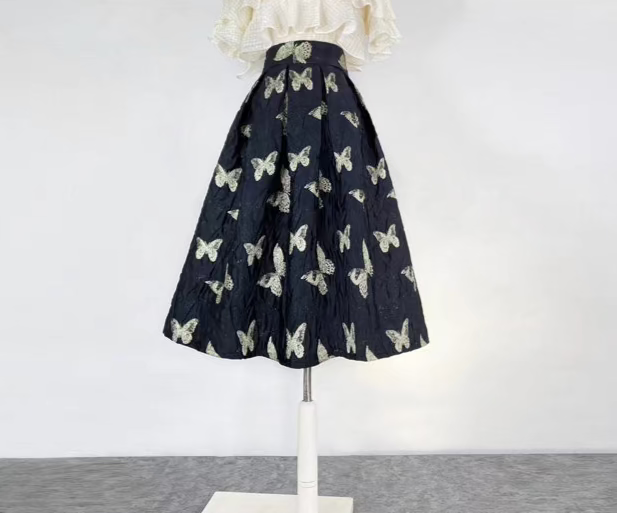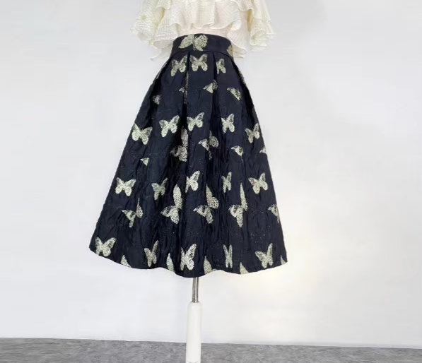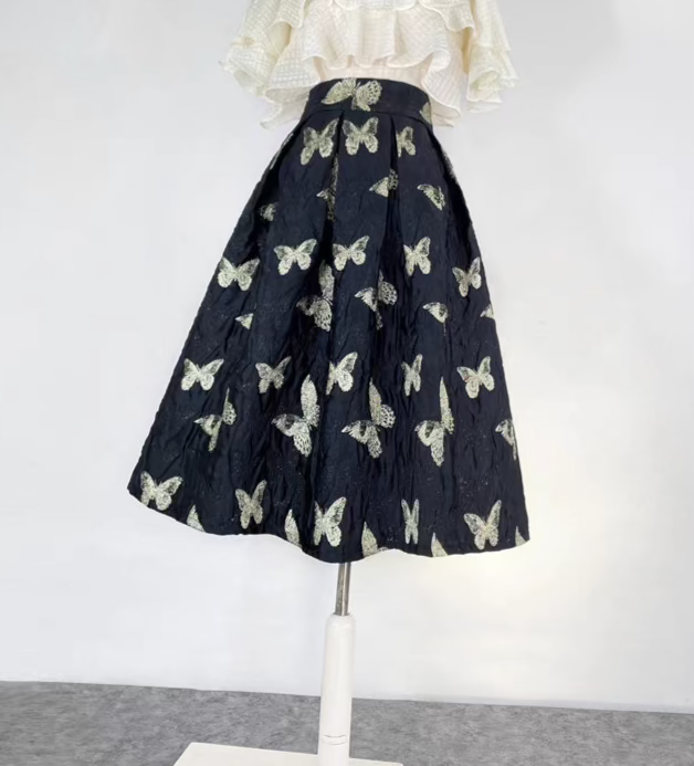 Butterfly retro embroidered high-waisted A-line fluffy skirt