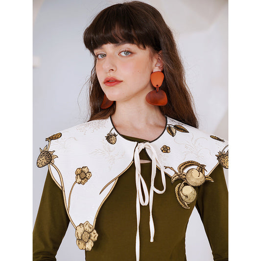 Botanical encyclopedia embroidered collar - Off White