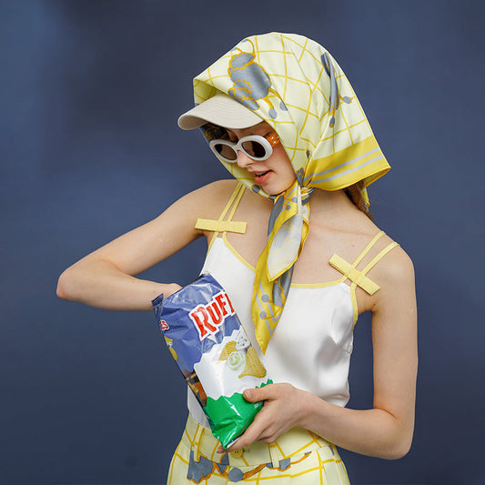 Lemon lattice and sheep pattern scarf