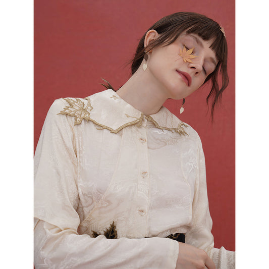 Botanical encyclopedia embroidered collar blouse