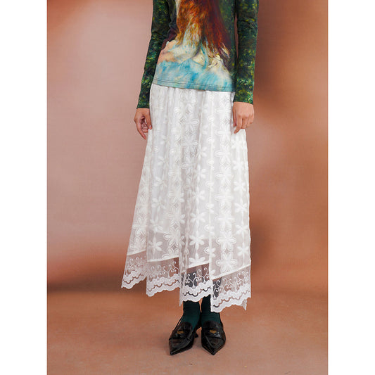Botanical encyclopedia embroidered tulle cape