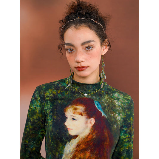 Landscape painting and maple embroidery dress