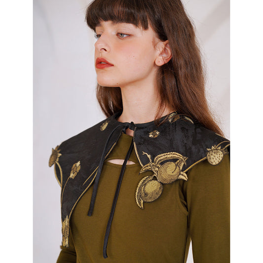 Botanical encyclopedia embroidered collar - Black