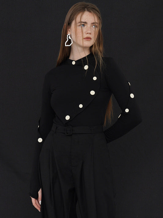 Black swan collar embellished blouse