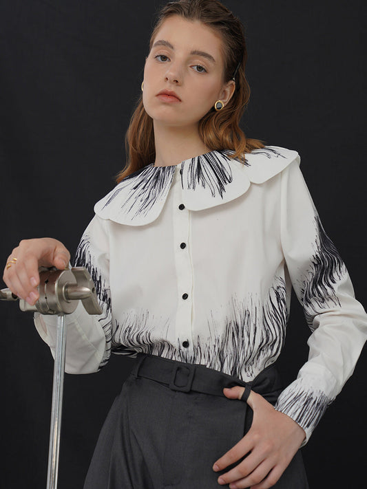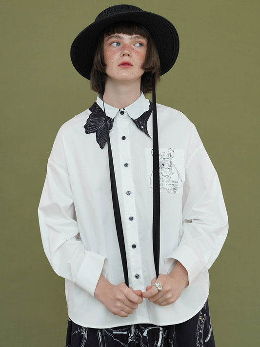 Cat and angel hand drawn art white blouse