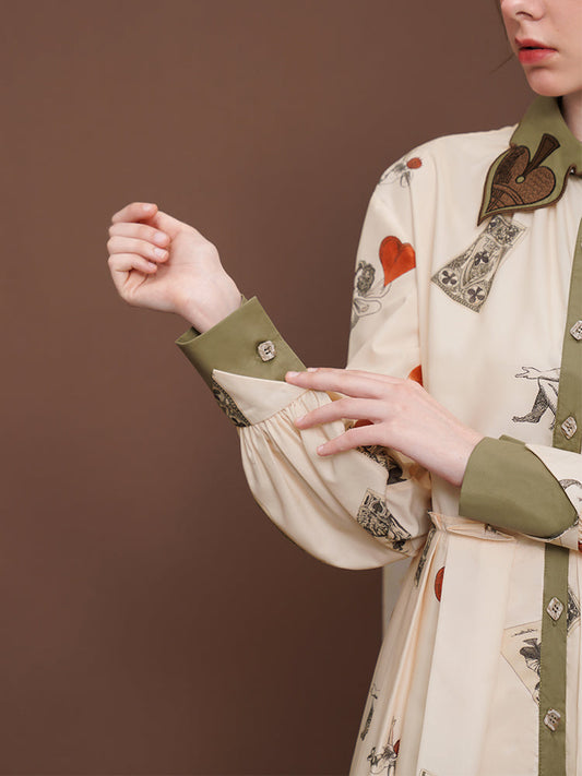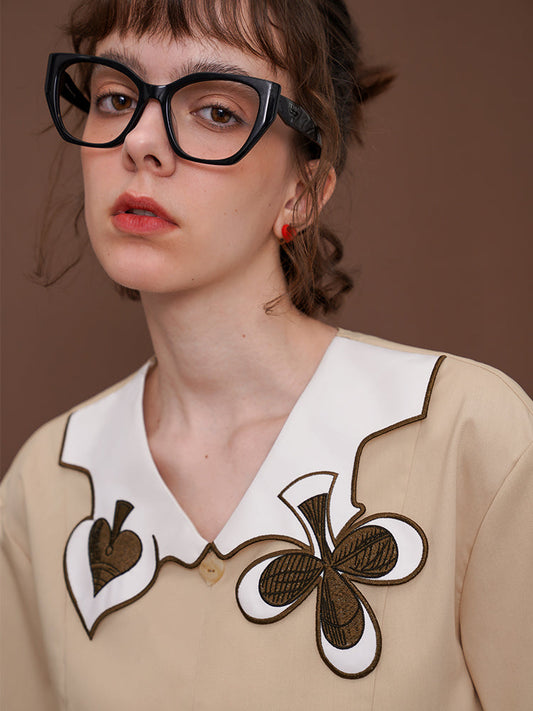 Embroidered blouse with playing card pattern
