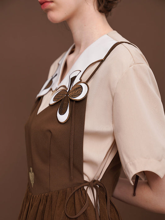 Brown Rabbit Embroidered Collar Blouse