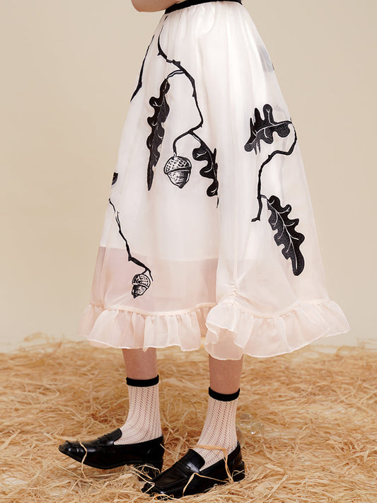 Embroidered skirt with leaves and nuts