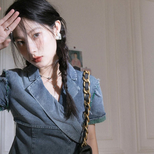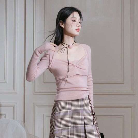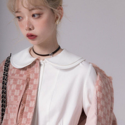 Mist Pink Contrast Color Thread Pleated Windbreaker