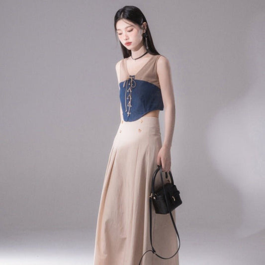 【日本国内発送、1週間以内にお届け】Layered Patchwork Lace Vacation Long Dress