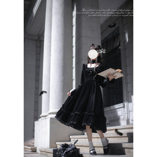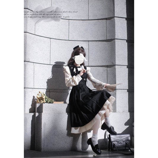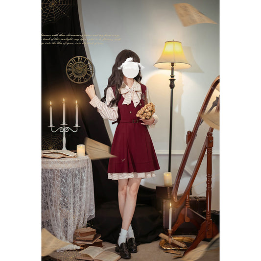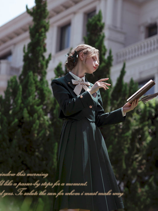 Dark green literary girl classical jumper skirt & short jacket & blouse