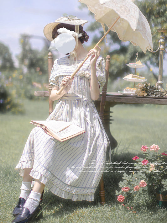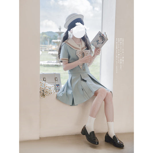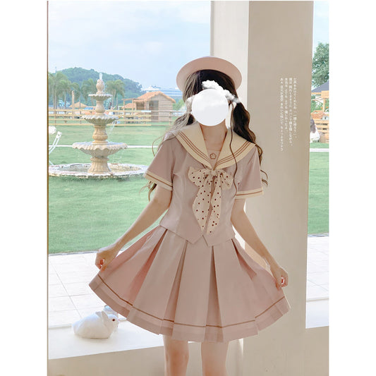 Cherry blossom colored lady's literary sailor blouse and pleated skirt