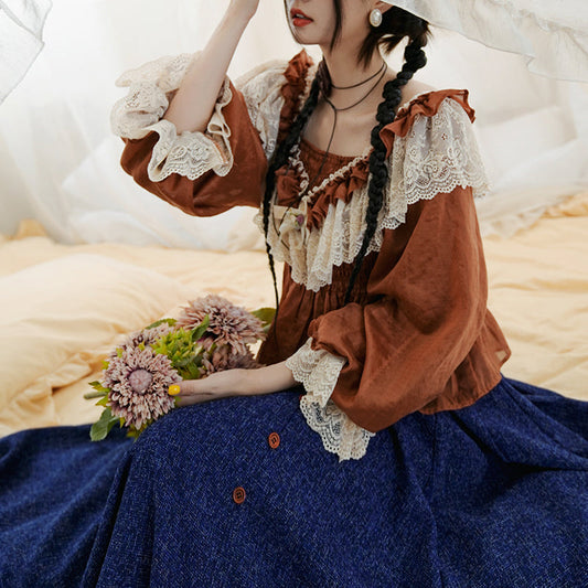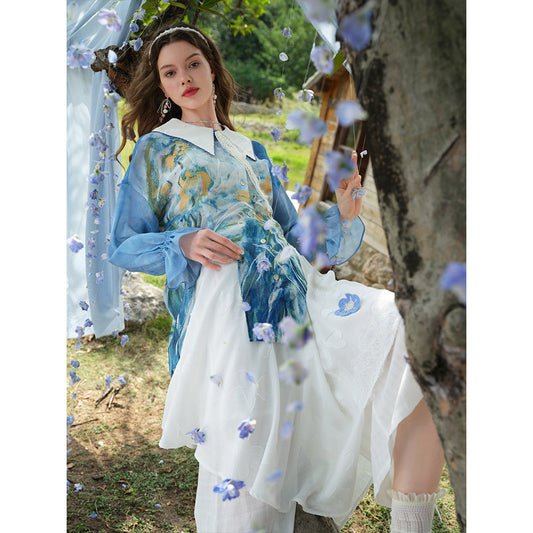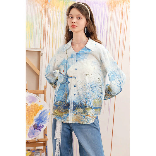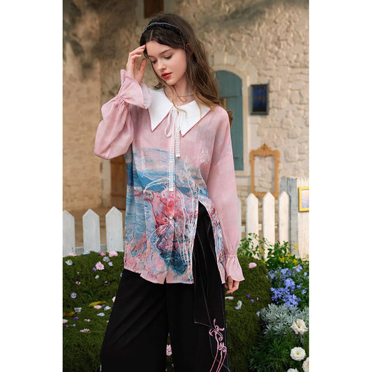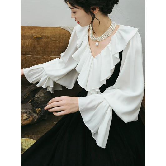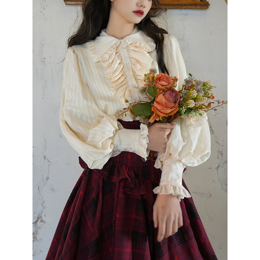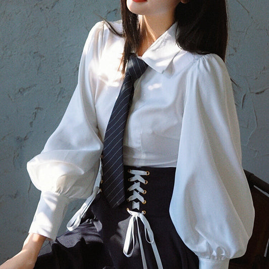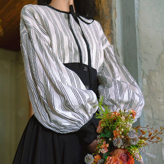 Black and White Vertical Stripe Lantern Sleeve Blouse
