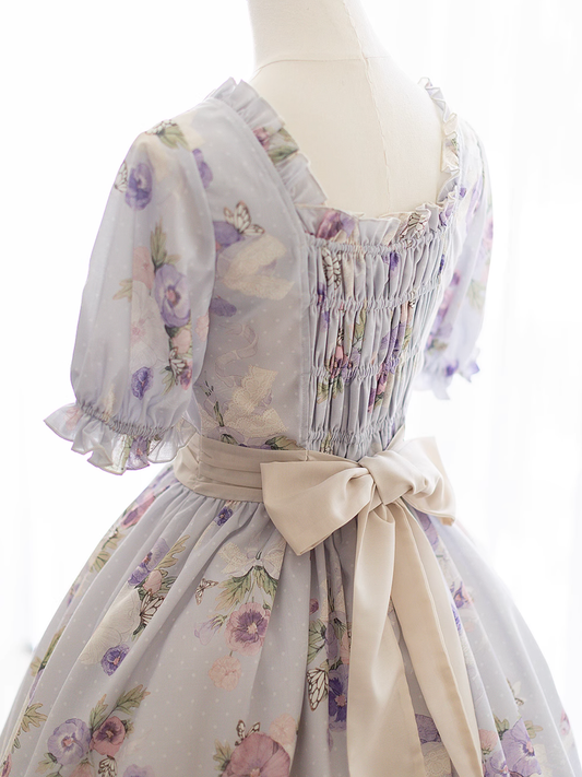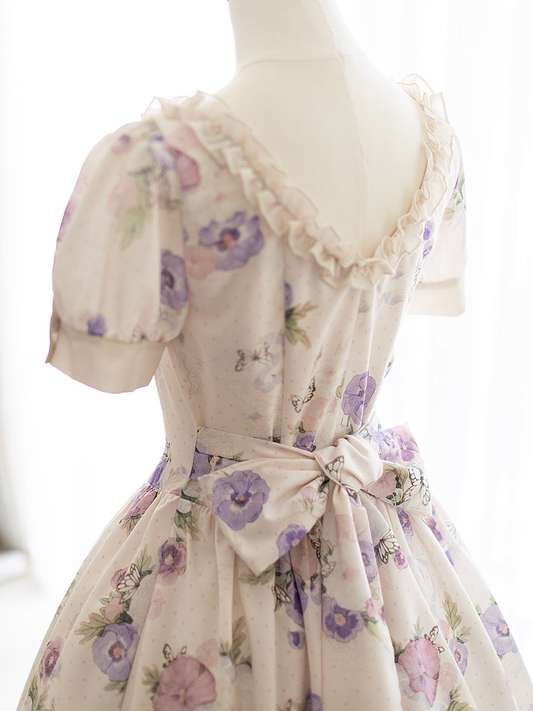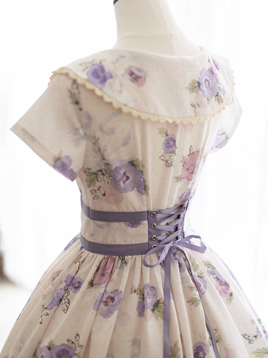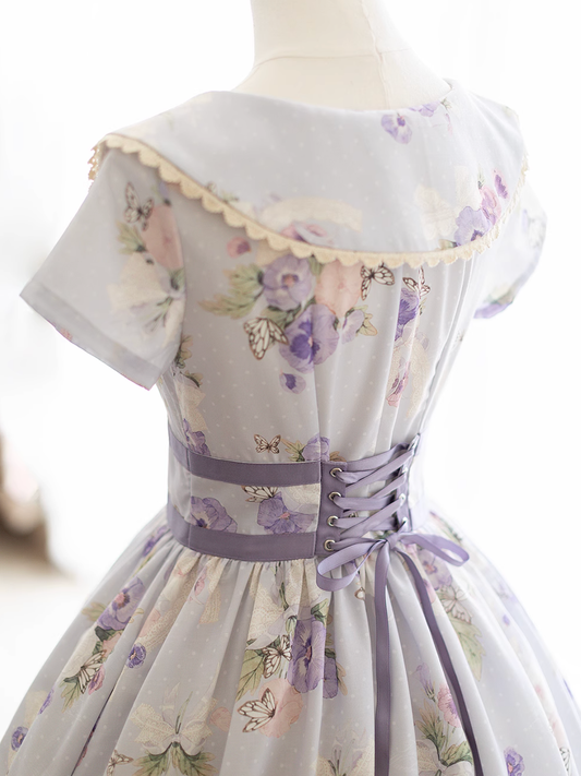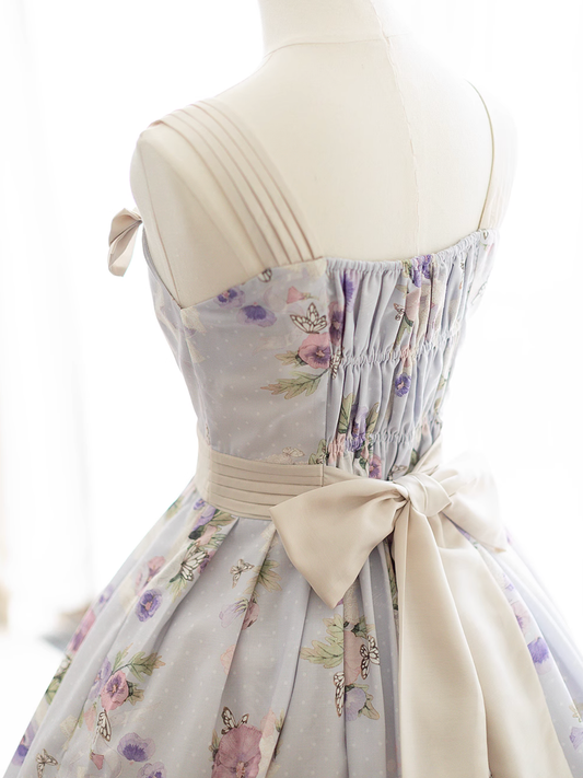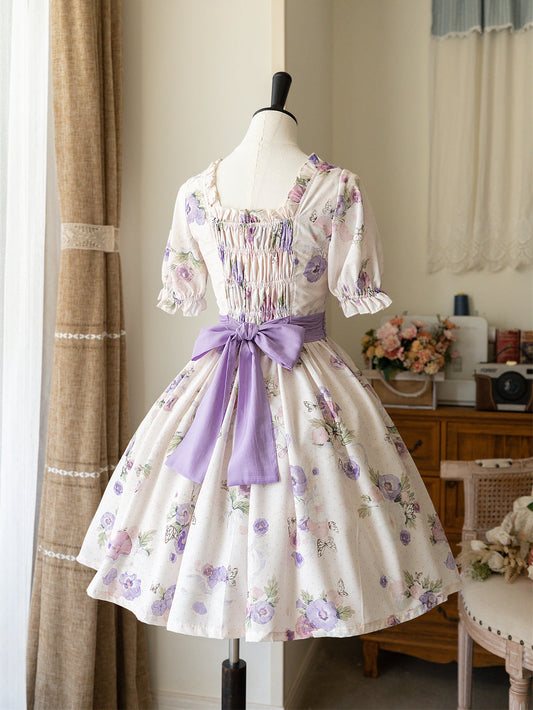 violet and butterfly watercolor waist ribbon dress (light purple)
