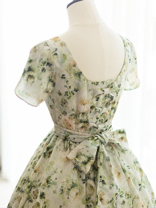 violet and butterfly watercolor waist ribbon dress (ivory)