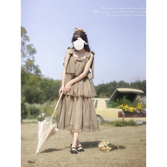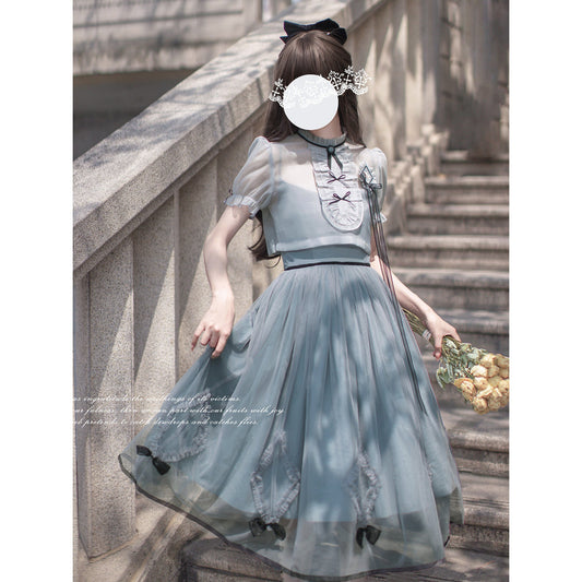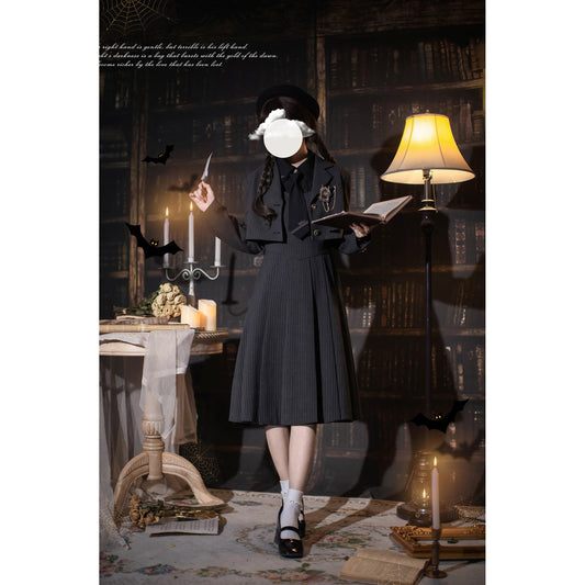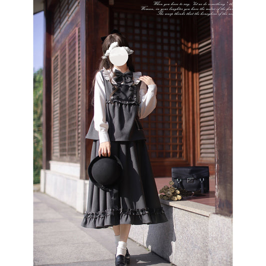 Light ink lady's literary retro vest, skirt and blouse