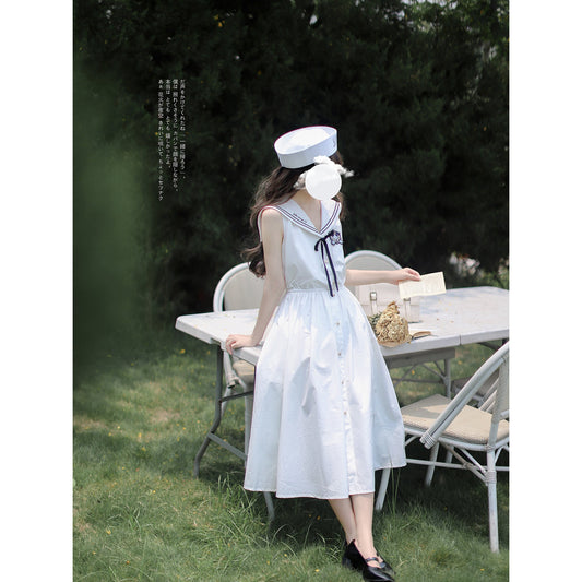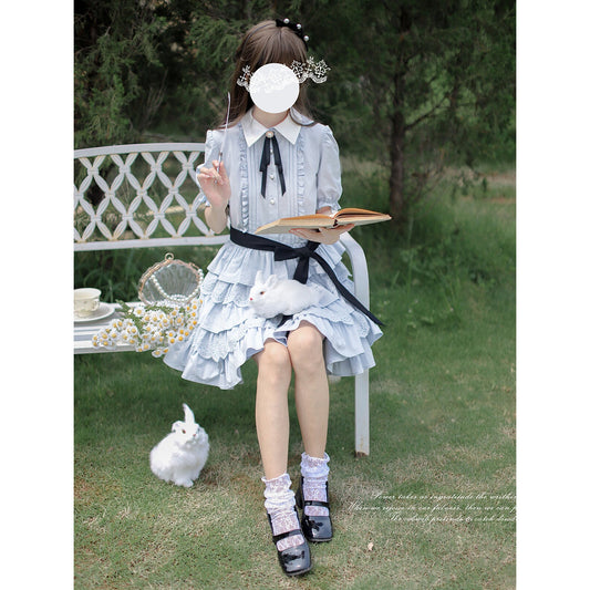 Light purple lady's literary sailor blouse and pleated skirt