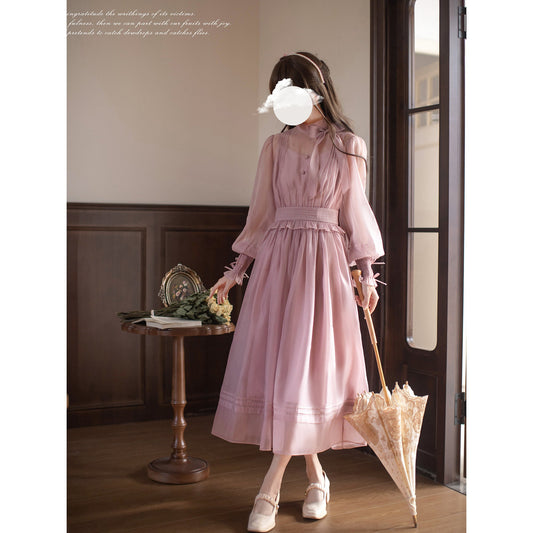 British girl's vertical striped dress and chiffon blouse(예약 상품:30일 이내에 발송)