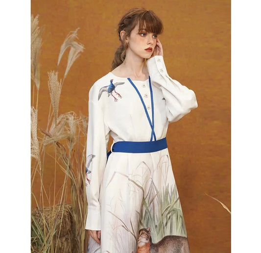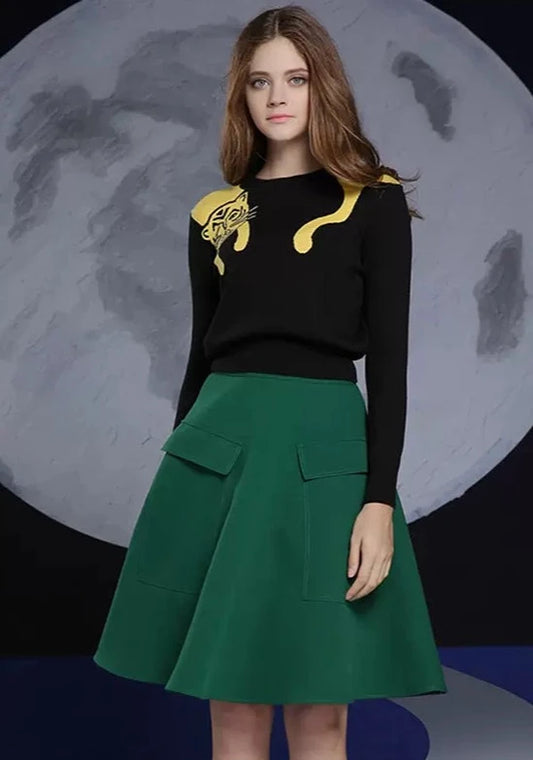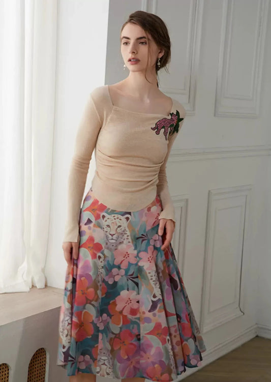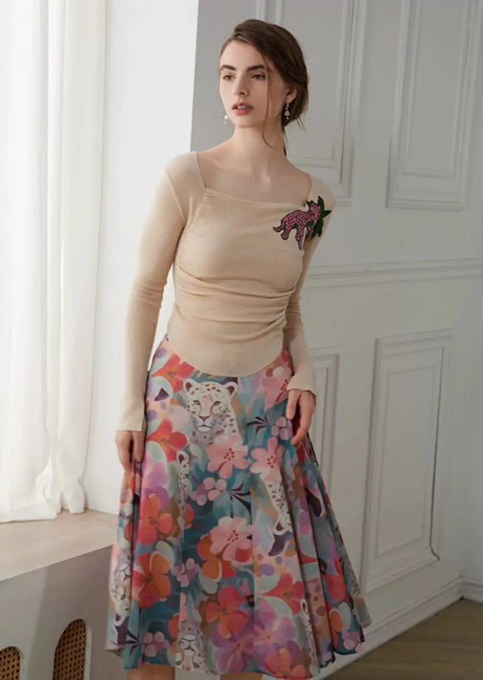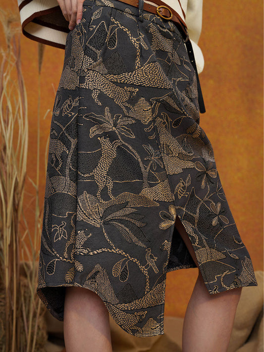 Jacquard asymmetrical skirt of a leopard wriggling in the dense forest