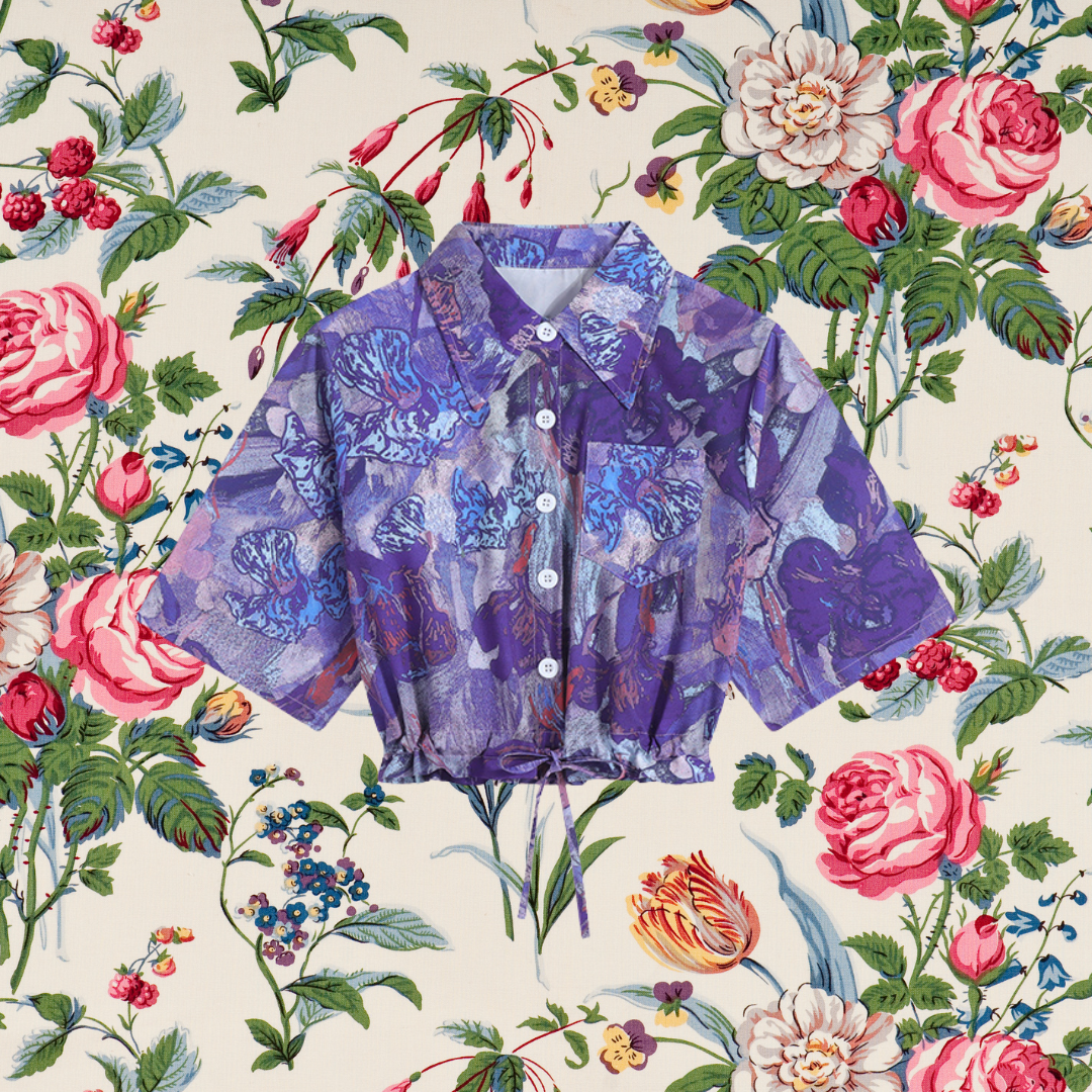 purple flower abstract painting short shirt
