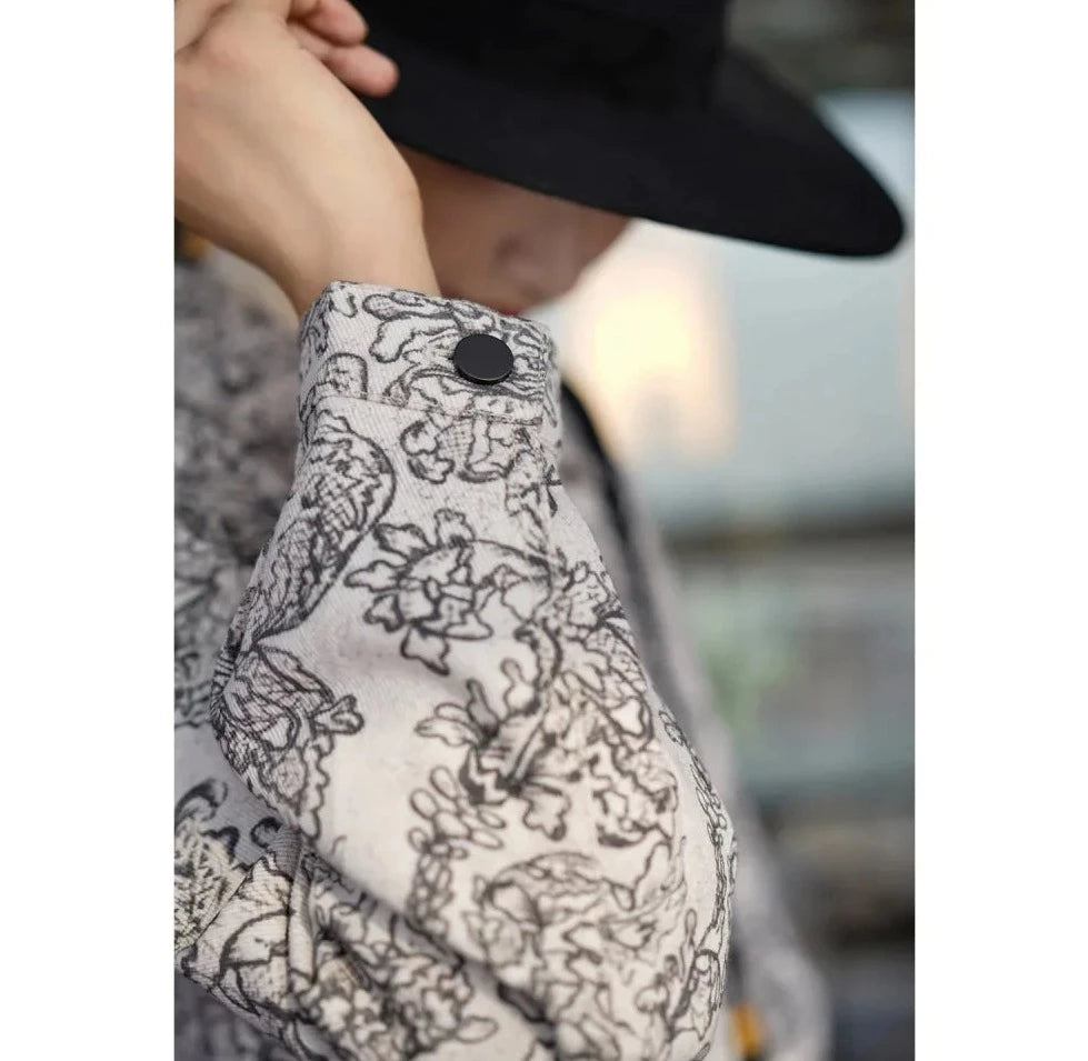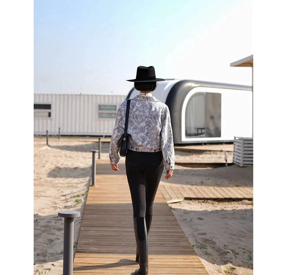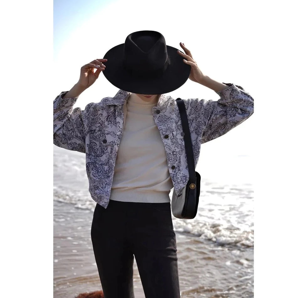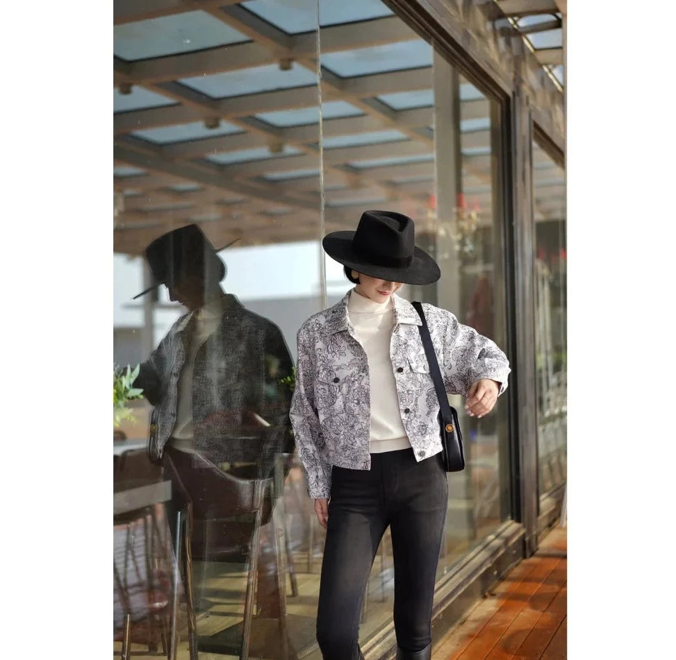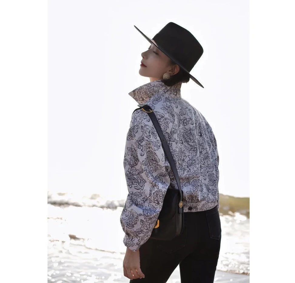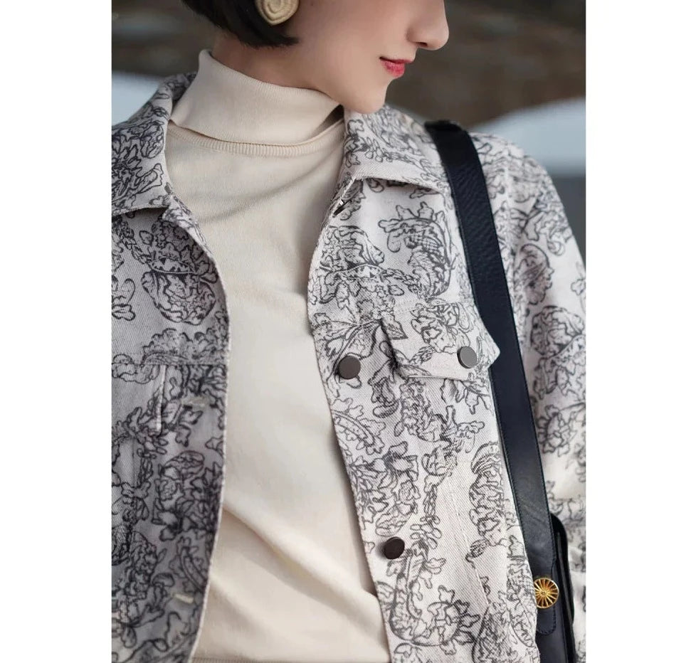 Monochrome plant pattern short jacket