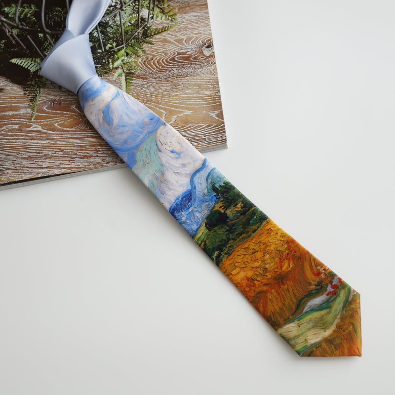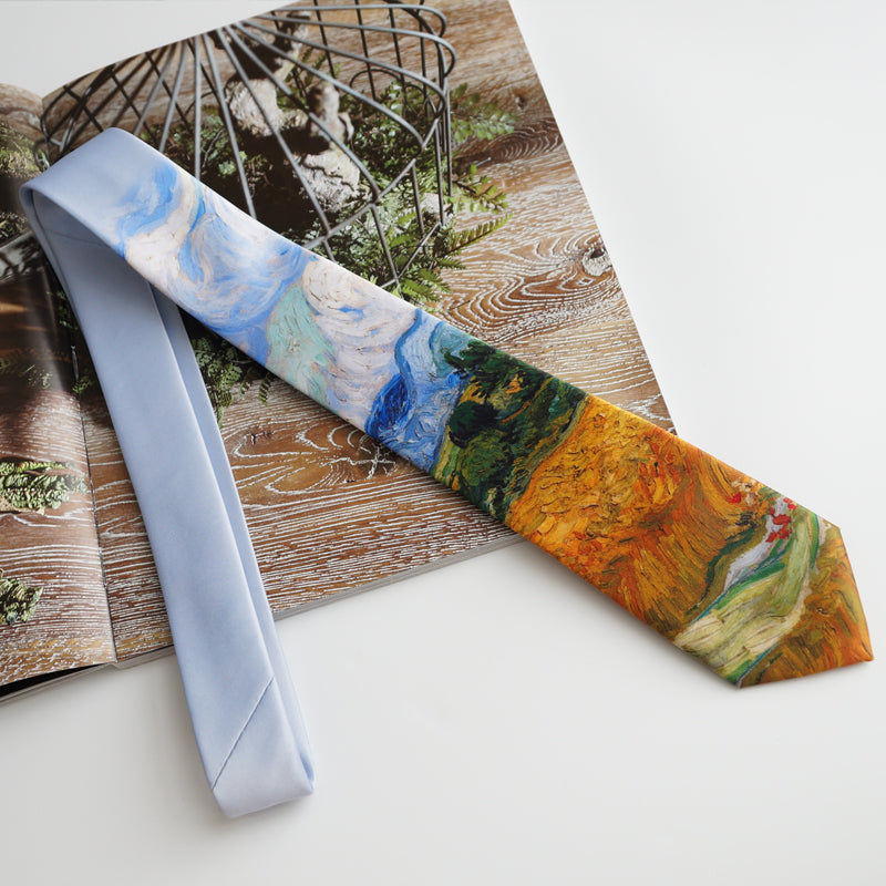 ゴッホの『カラスのいる麦畑』が描かれたネクタイ。
