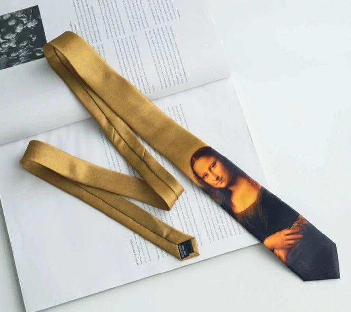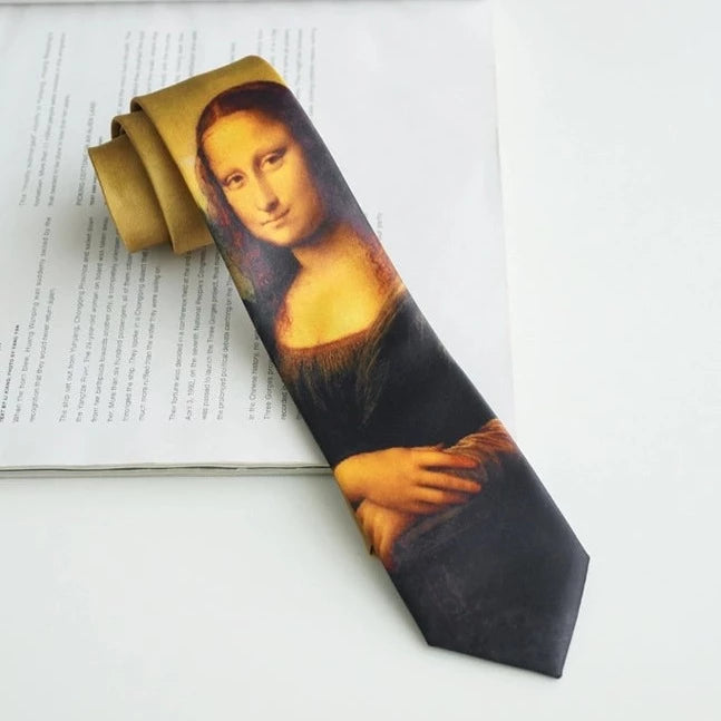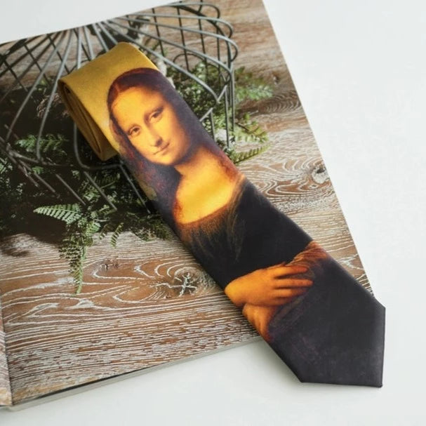 レオナルド・ダ・ヴィンチの『モナリザ』が描かれたネクタイ。