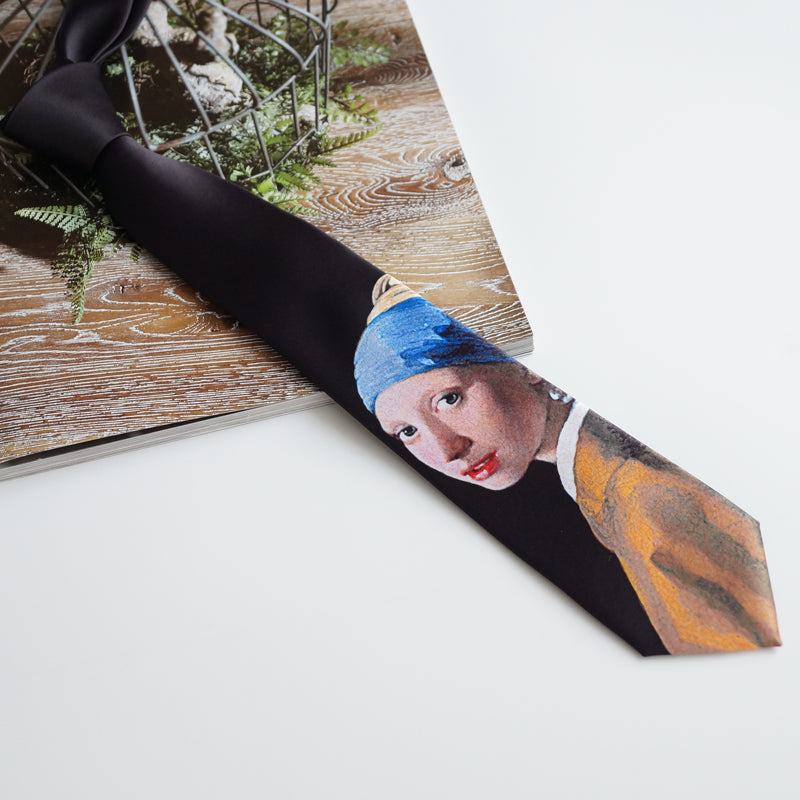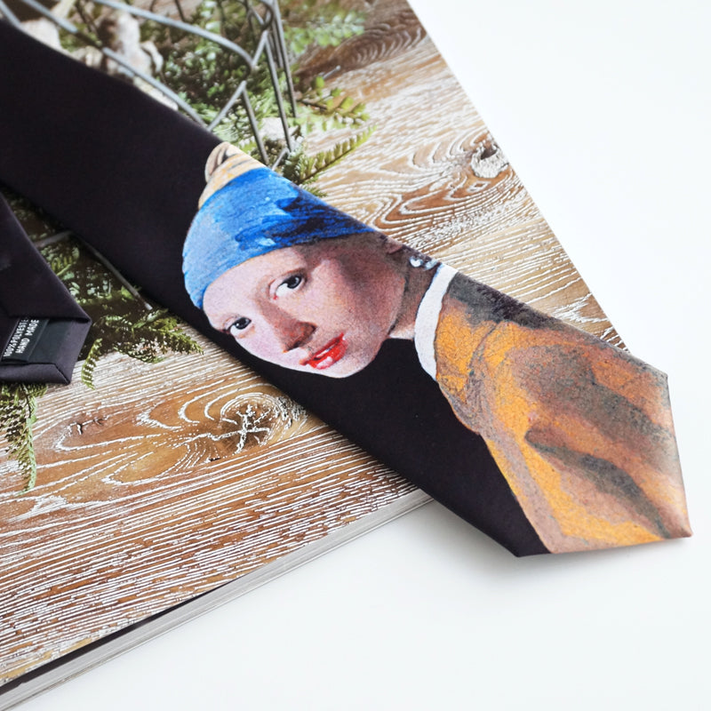 ヨハネス・フェルメールの『真珠の耳飾りの少女』が描かれたネクタイ。