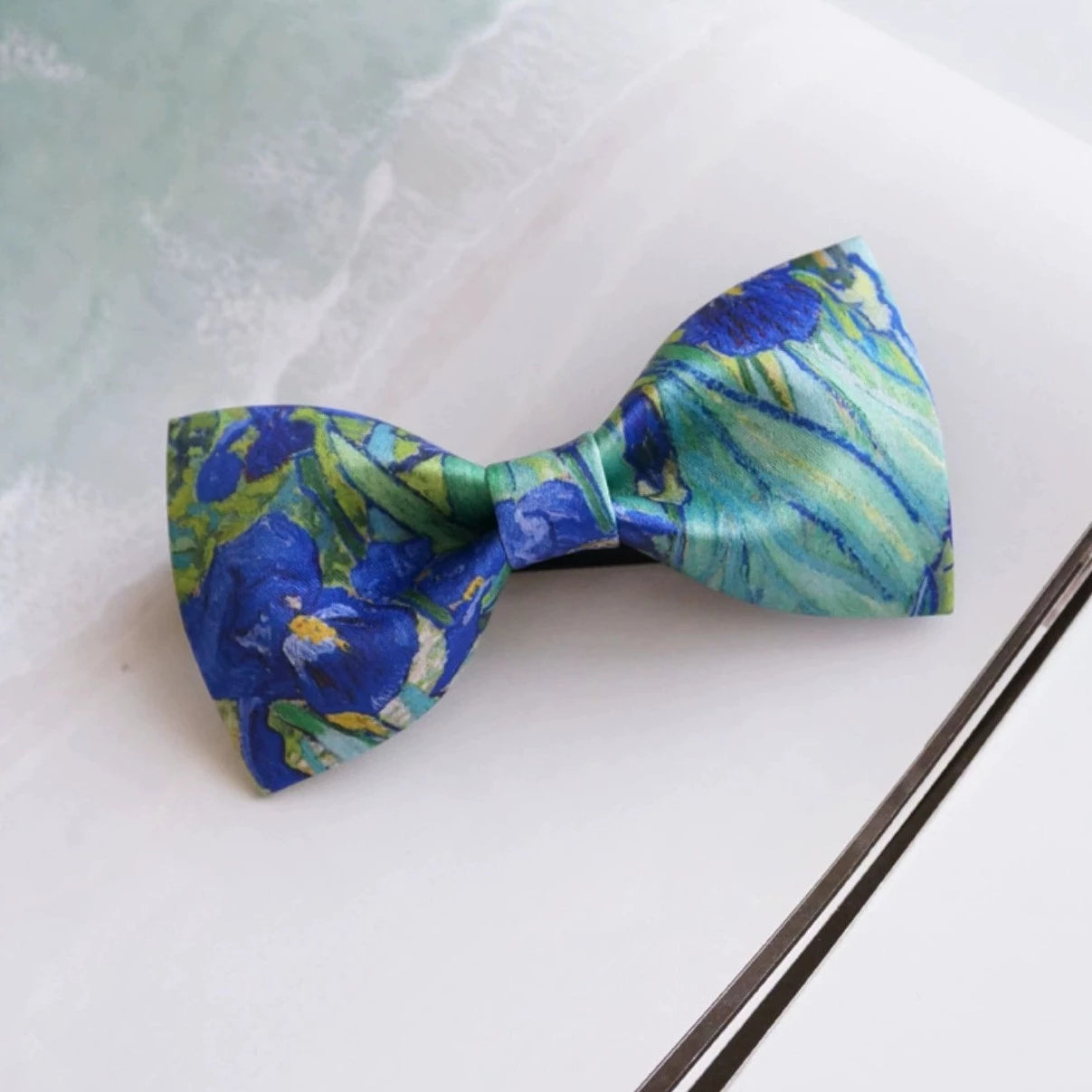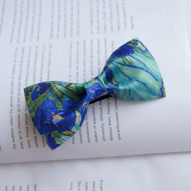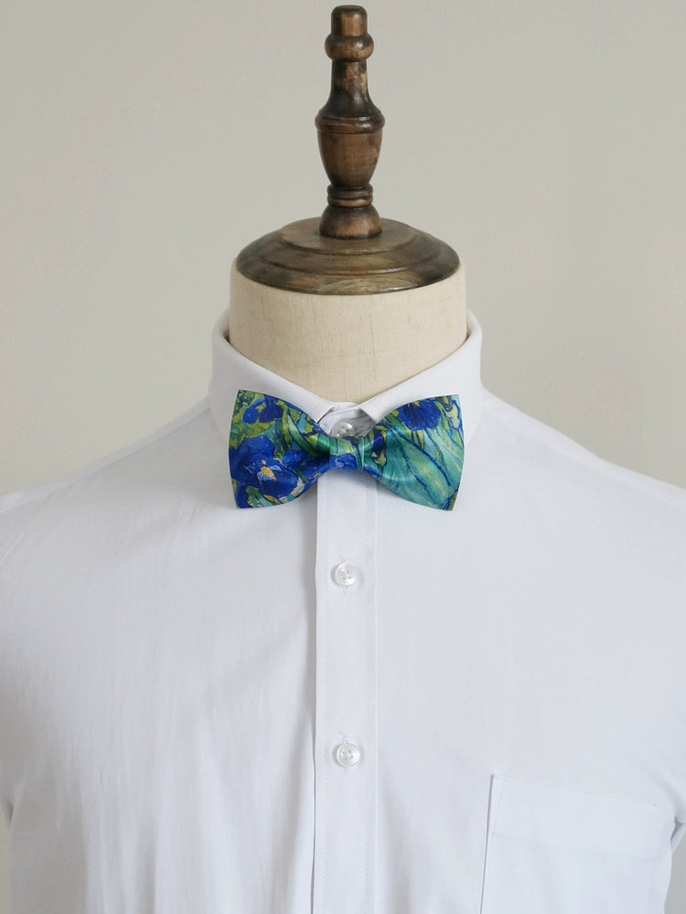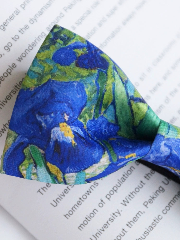 ゴッホの『アイリス』が描かれた蝶ネクタイ。