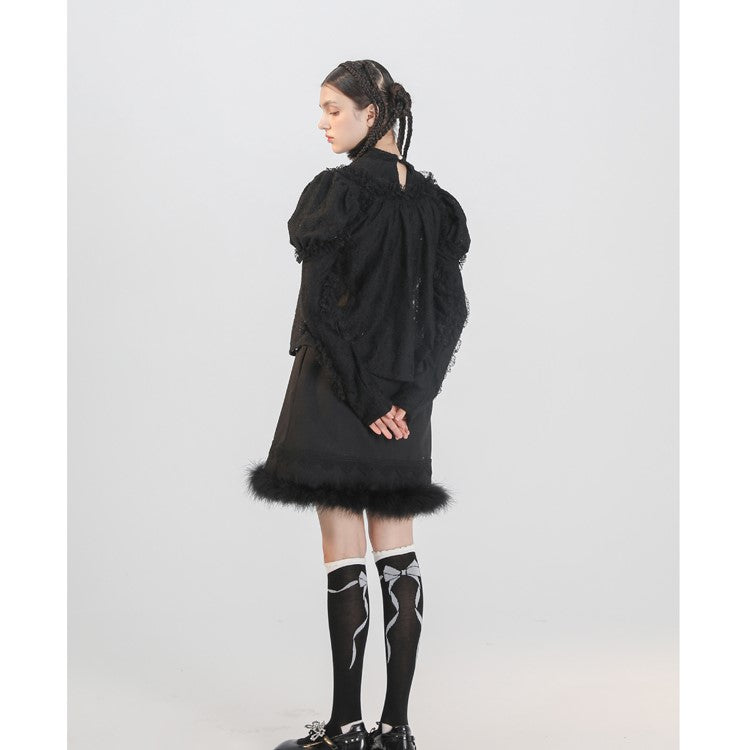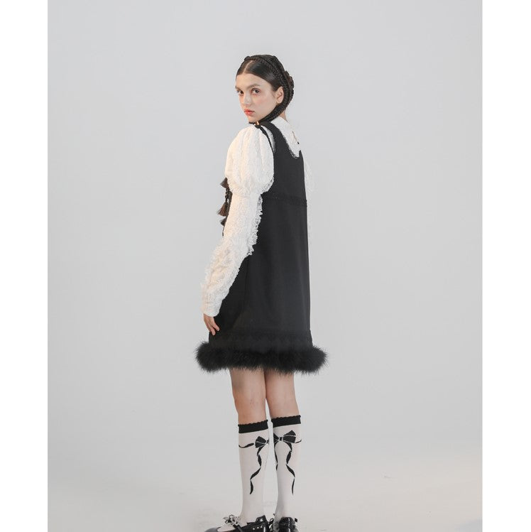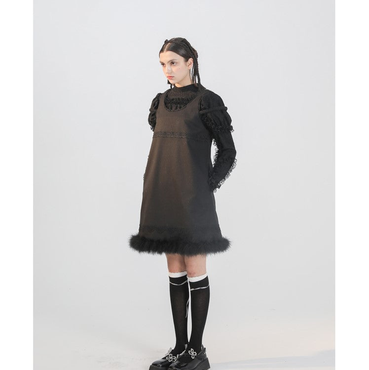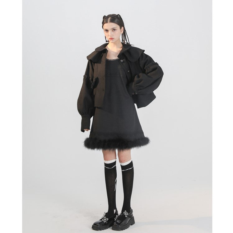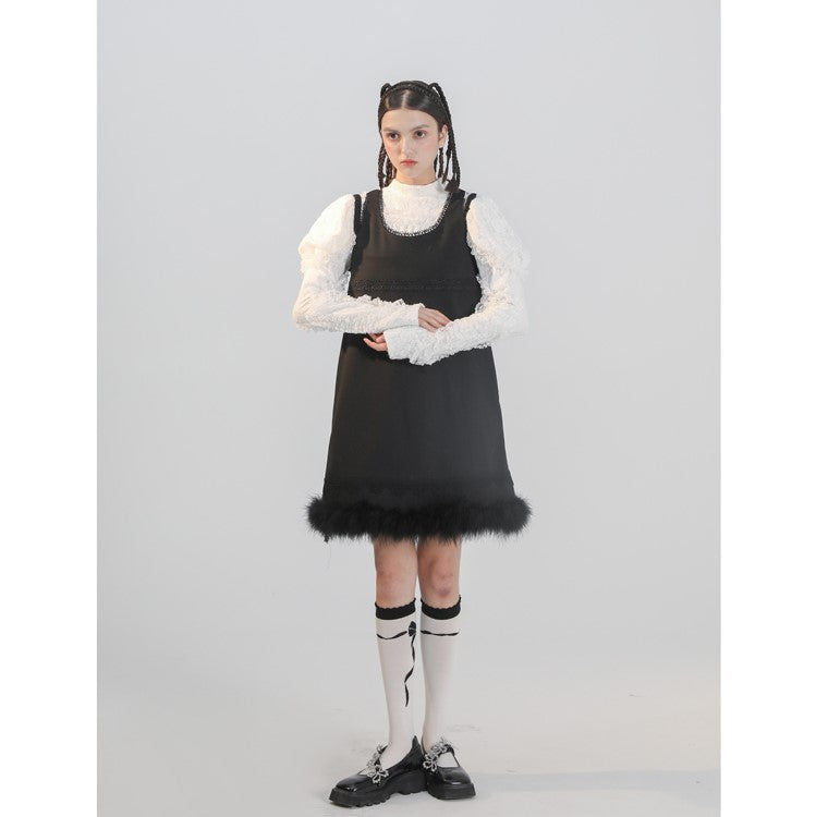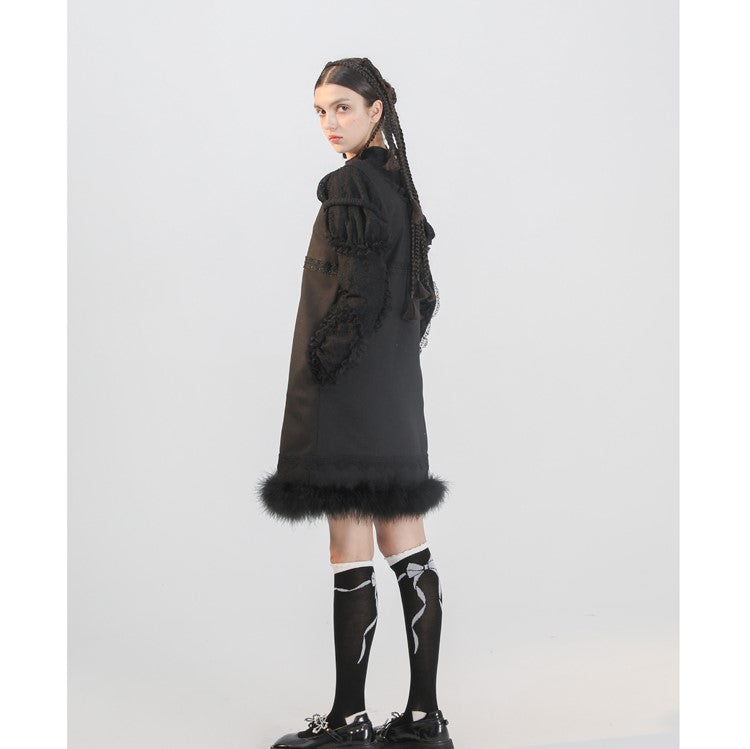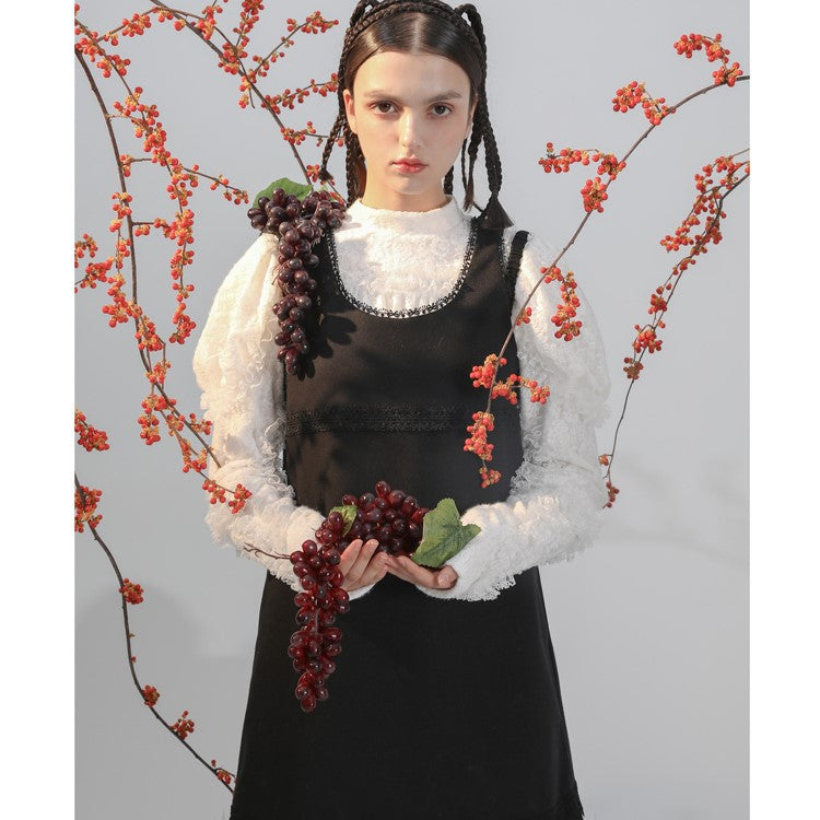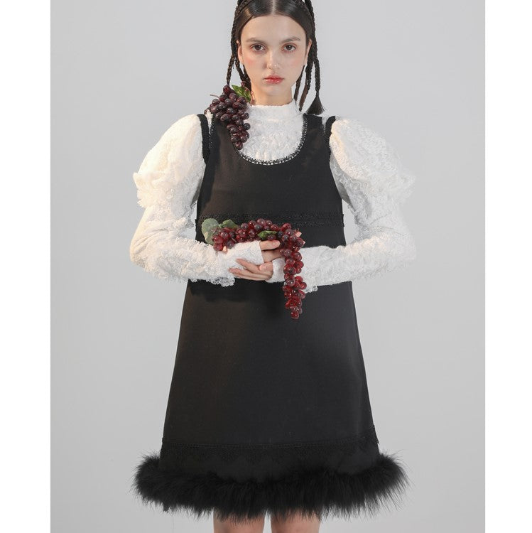 Black cat embroidery sleeveless dress
