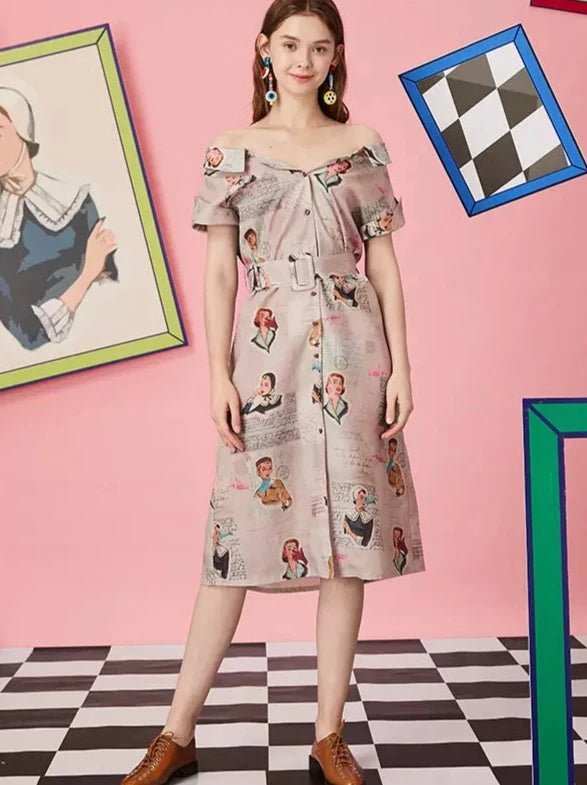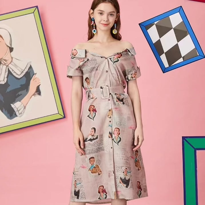 off-shoulder one-line shirt collar dress