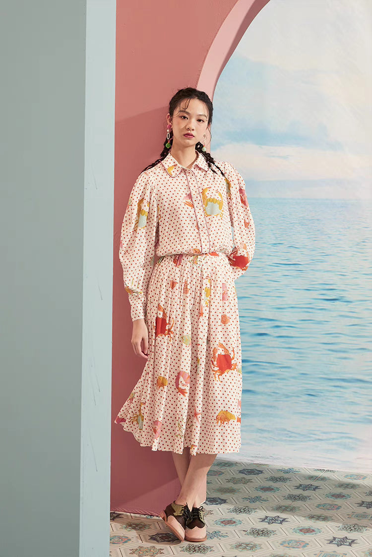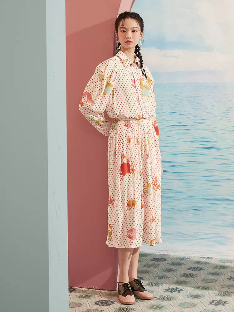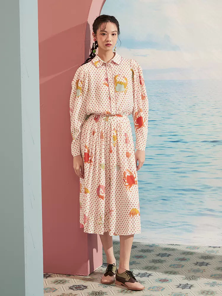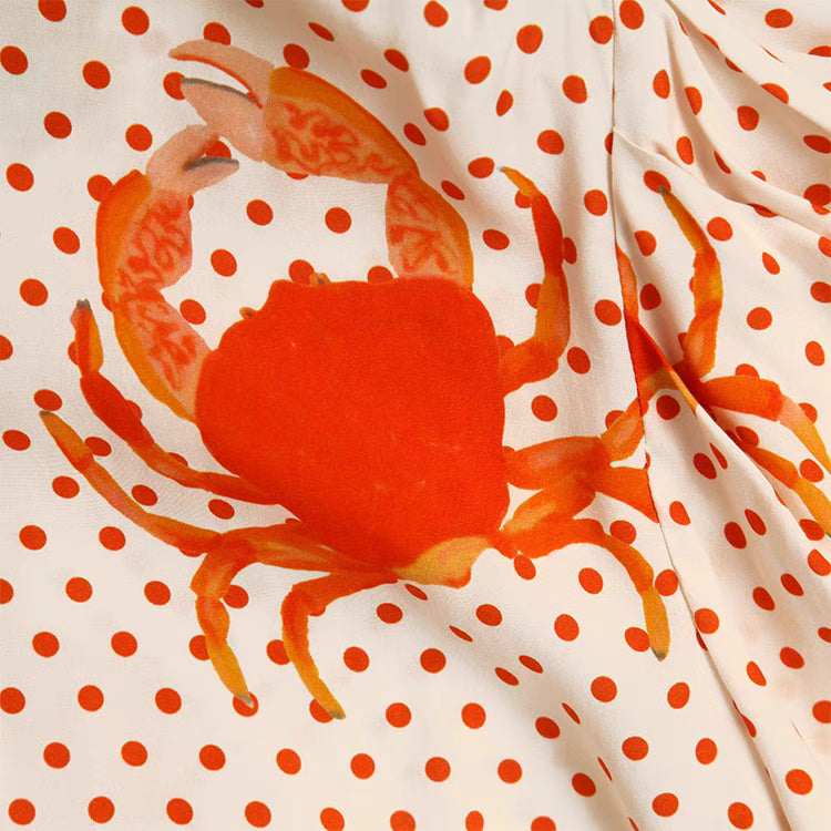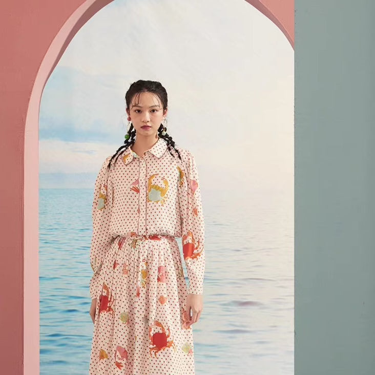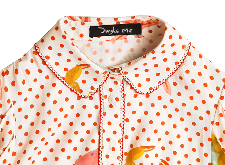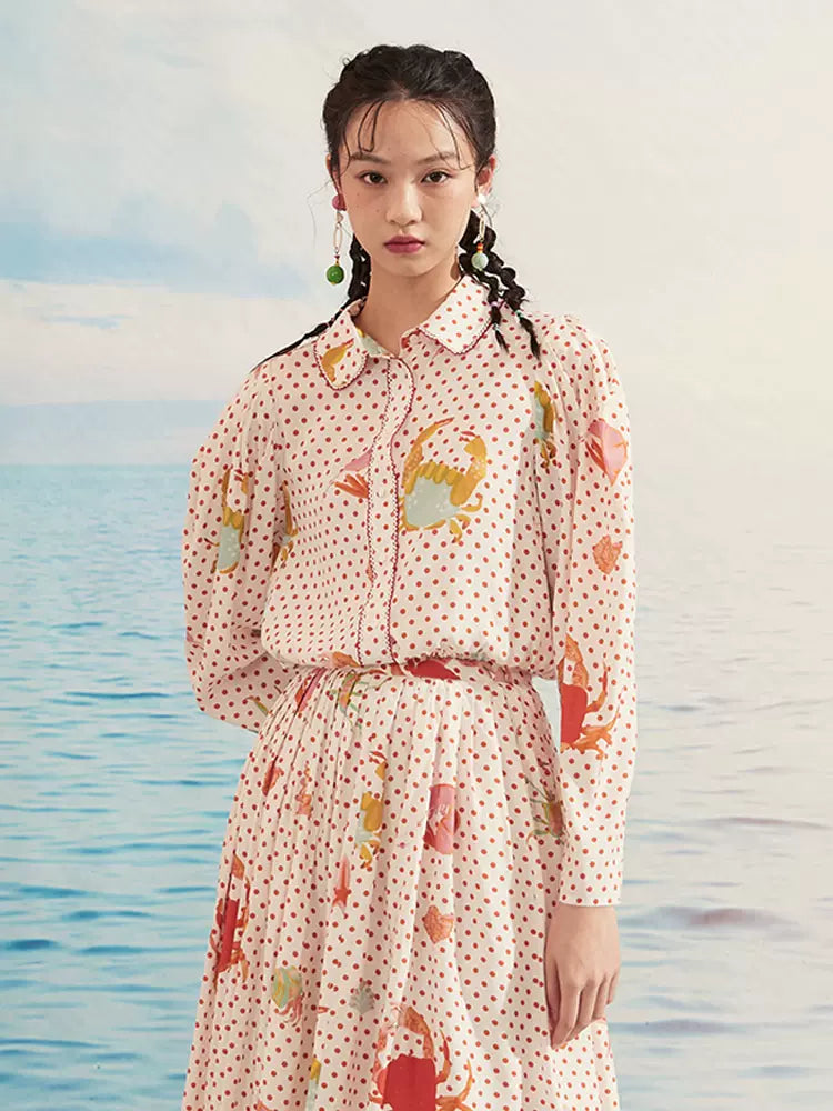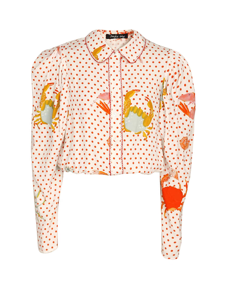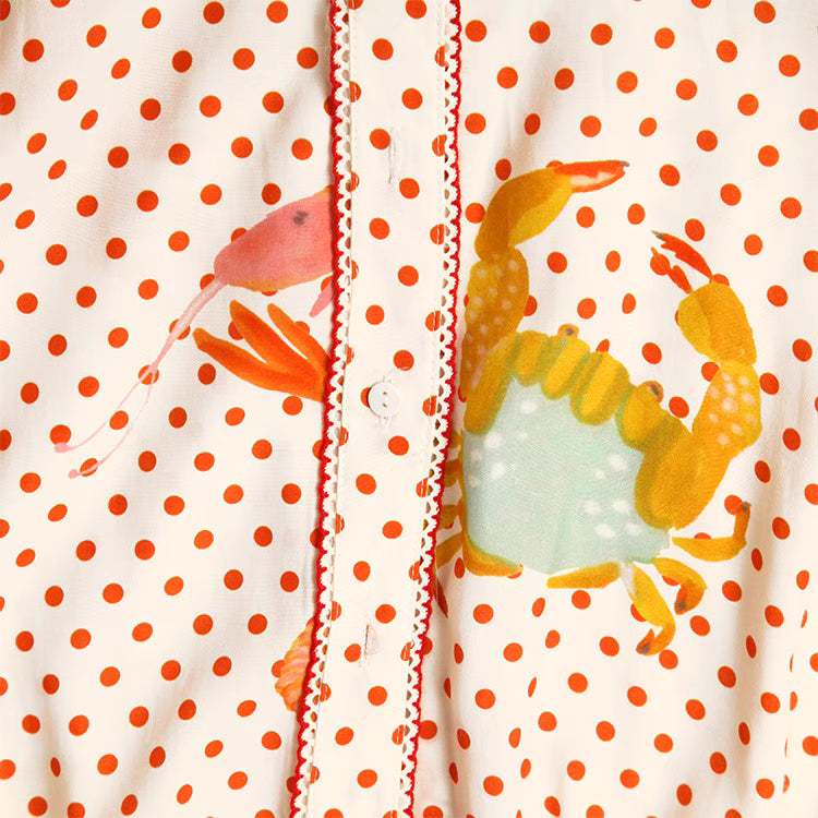 contrasting lace collar puff-sleeved holiday style crab shirt