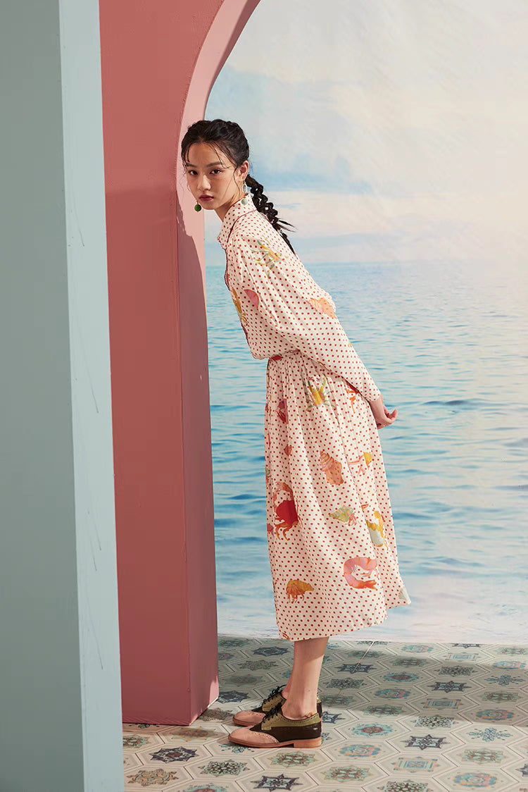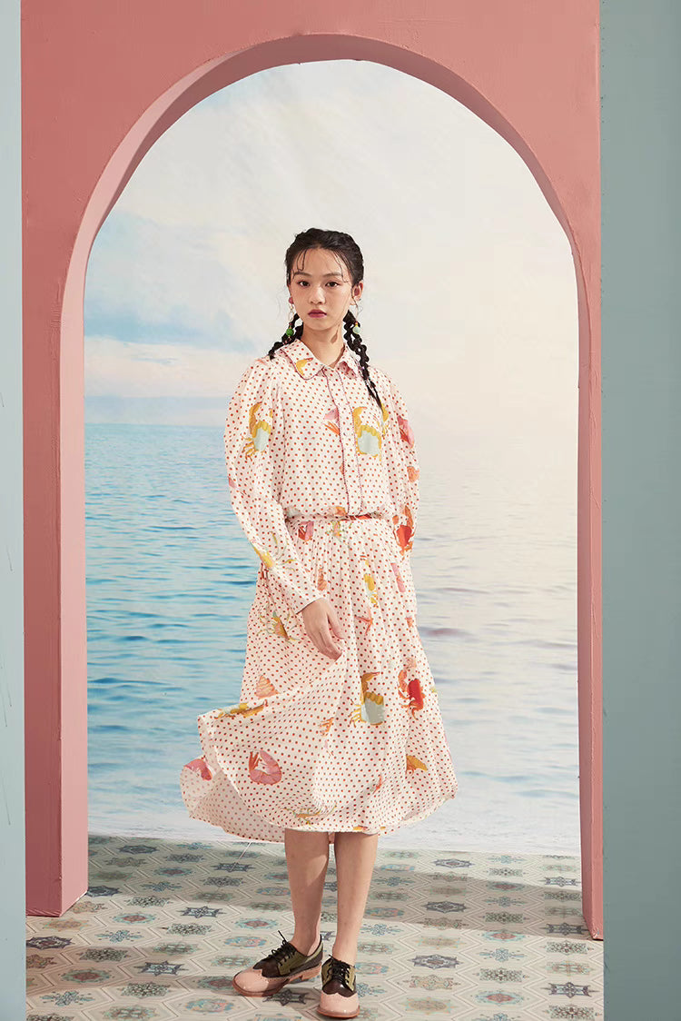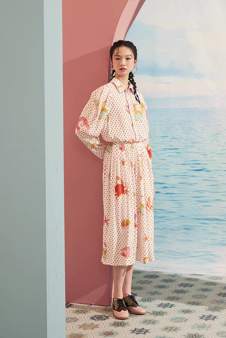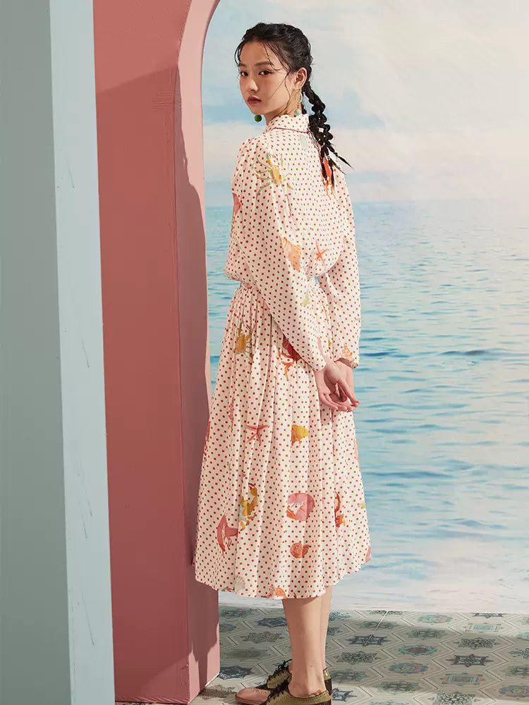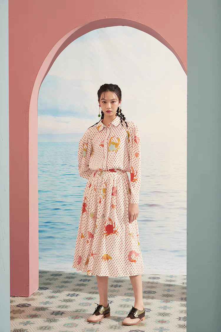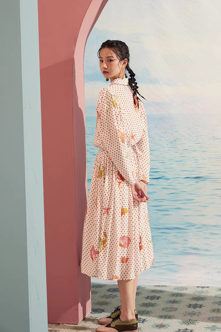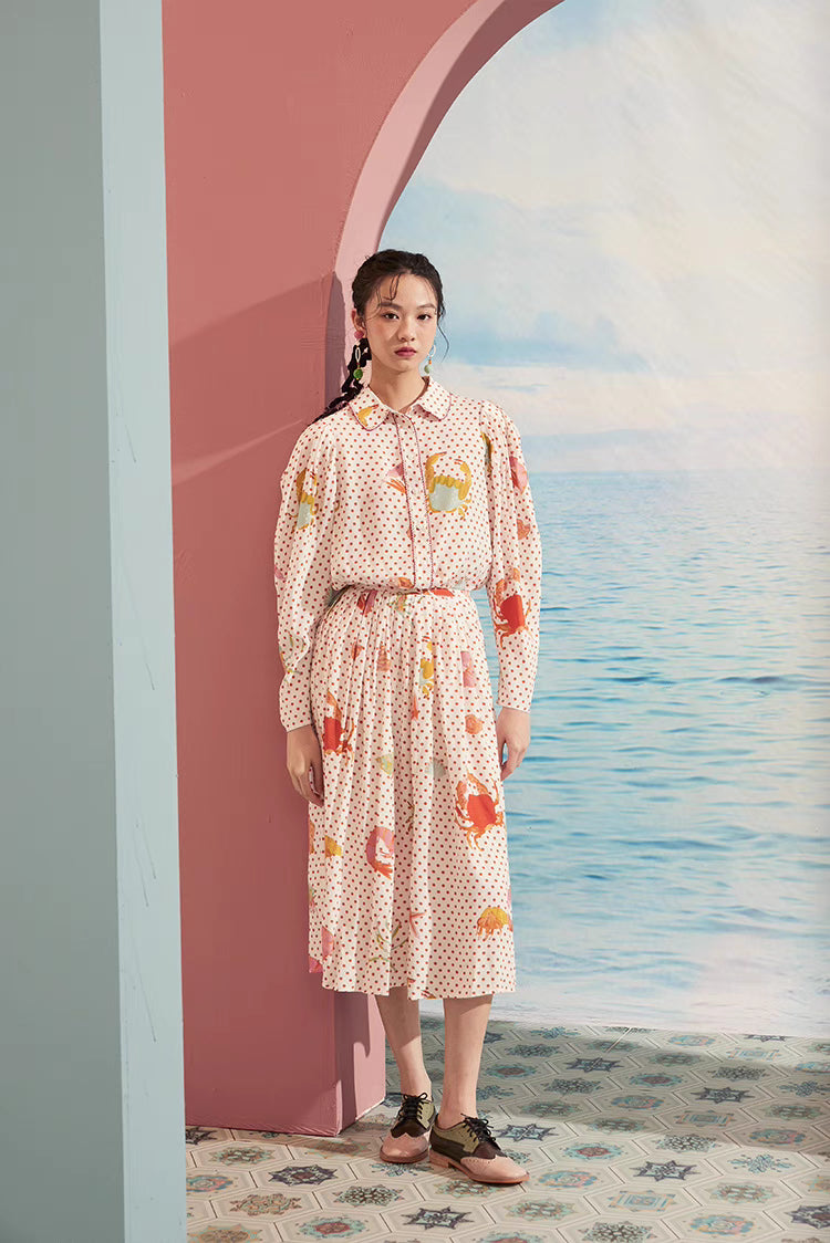 contrasting lace collar puff-sleeved holiday style crab shirt